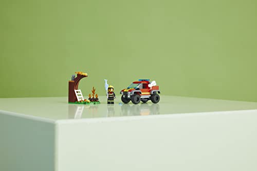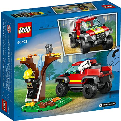 LEGO City 4x4 Fire Engine Rescue Truck 60393, Toy for 5 Plus Year Old Boys & Girls, Set with Water Element Launcher, Firefighter Minifigure and Cat Figure