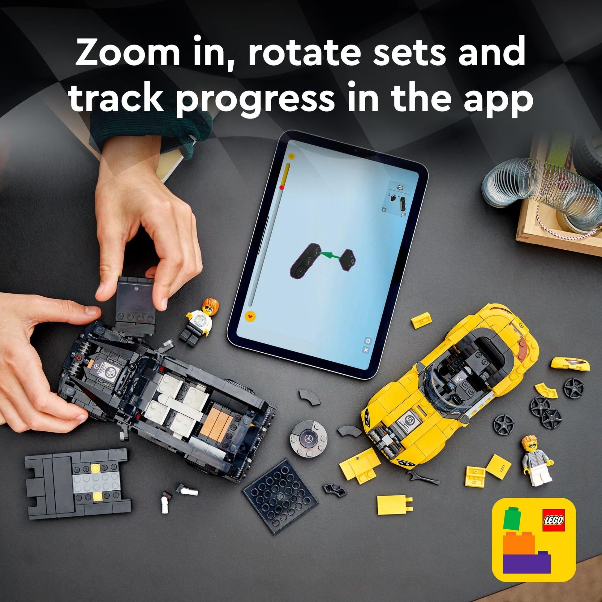 - 2 driver minifigures – Each buildable vehicle toy comes with a driver minifigure wearing a Mercedes outfit so kids can role-play fast-paced races