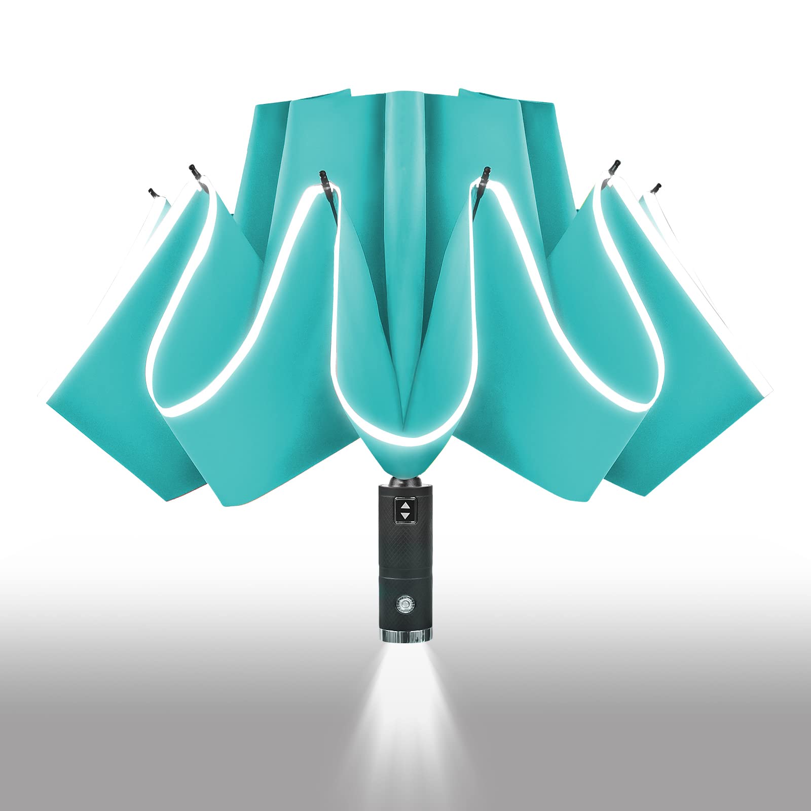 - 🌂Led Umbrella Handle with Lights & Quick Auto Open Close - Lighted umbrella makes your life much easier in the rain/low visibility conditions. Folding inverted LED umbrella portable windproof compact have a fully automated system, perfect for one hand operation. This inverted umbrella automatic open close at the touch of the button. Also comfortable to hold and easy to grip. A portable windproof travel/business umbrella for you.