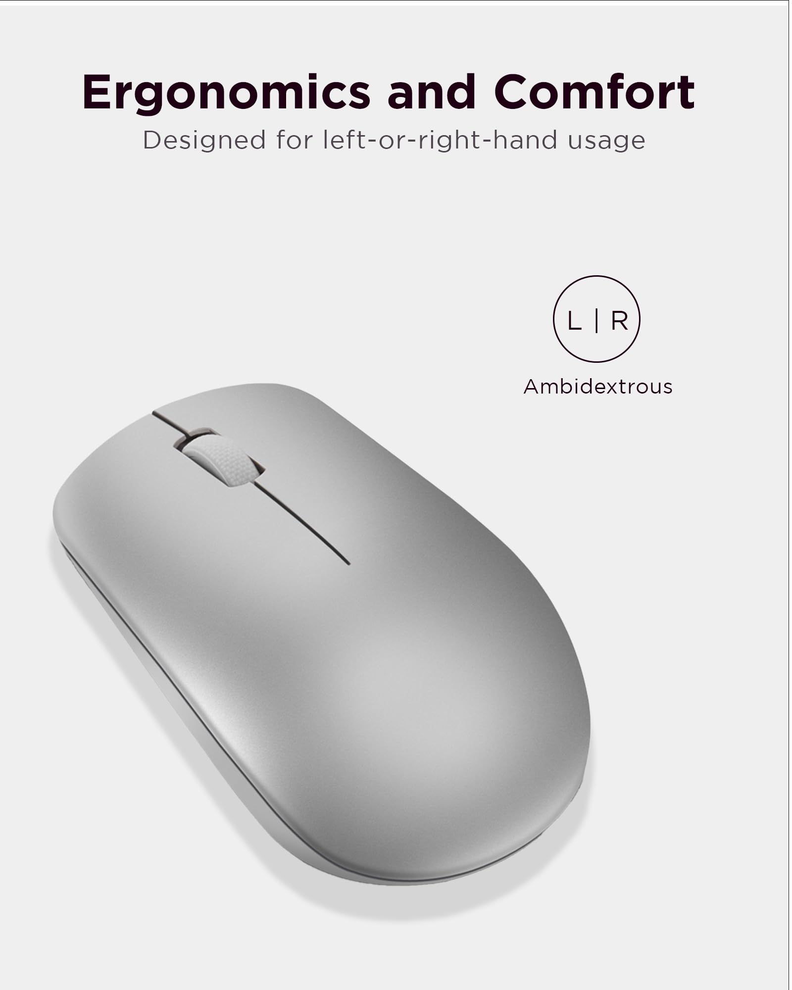- Ergonomic Comfort for Extended Use: Experience unparalleled comfort during long work sessions with the unique and contoured design of the Lenovo 530 Wireless Mouse. Crafted for maximum ergonomics, this mouse fits perfectly in your hand, ensuring all-day comfort. The durable soft touch finish adds a premium feel to your interactions, making productivity a breeze.