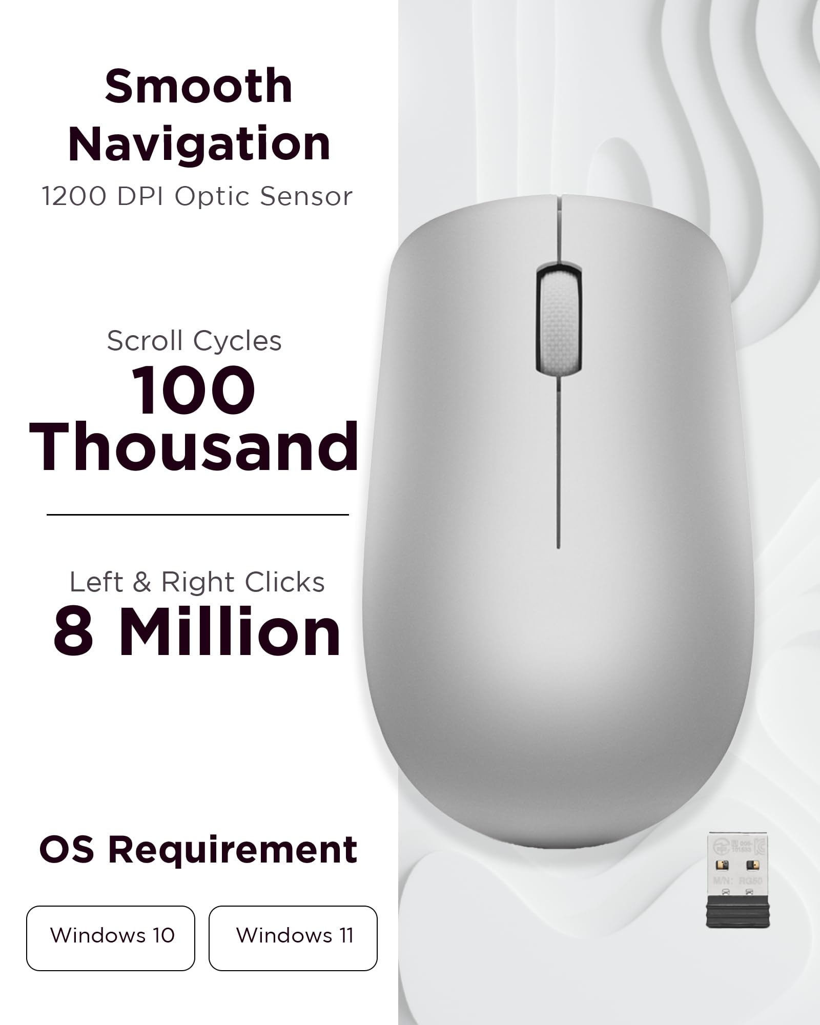- Durability That Lasts: With the Lenovo 530 Wireless Mouse, longevity is a guarantee. Boasting a remarkable lifespan of up to 8 million clicks for both left and right buttons, this mouse is built to withstand the rigors of daily use. Enjoy reliable performance for years to come, making it an ideal companion for your computing tasks.