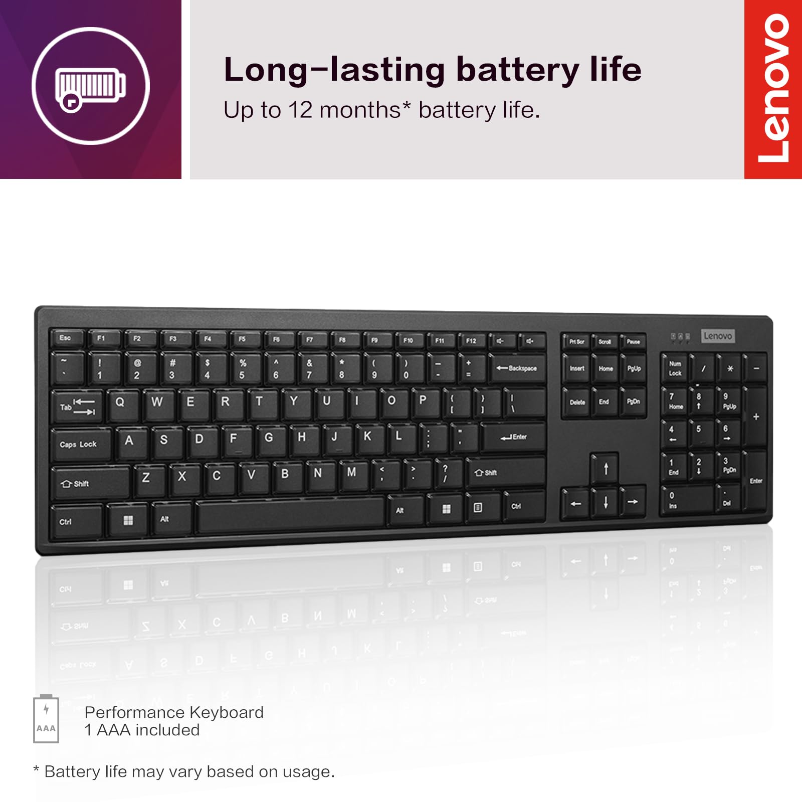 Lenovo – Wireless Compact Keyboard– 100 Cordless Keyboard for PC, Laptop with Windows – Cordless Connection – Silent Key Clicks, Black