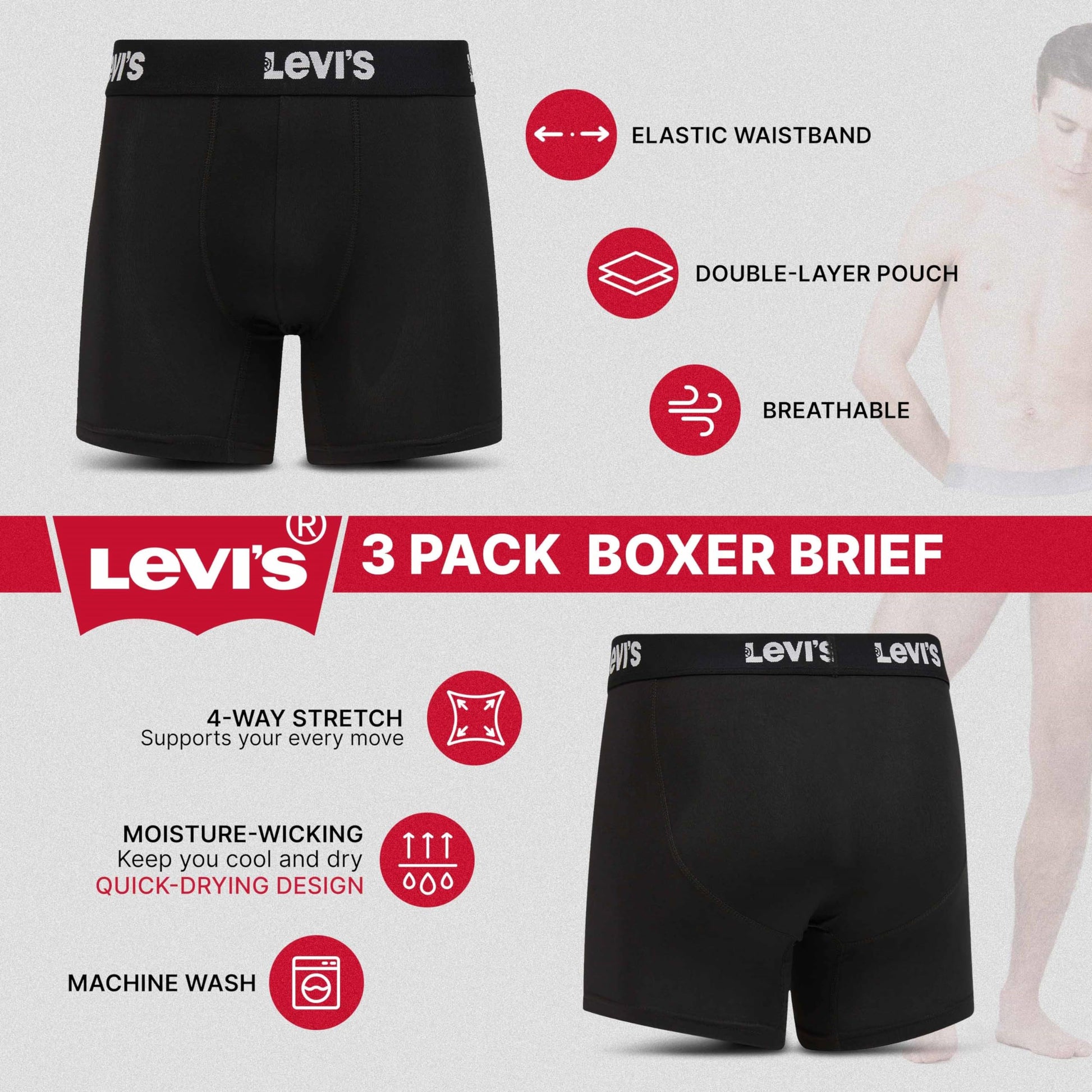 Levi's Mens Underwear Microfiber Boxer Brief for Men Ultra Soft 3 Pack Black