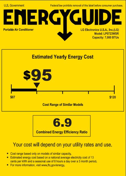 [2023] LG 7,000 BTU (10,500 ASHRAE) Remote Controlled Portable Air Conditioner