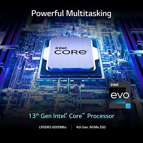 - 13th Gen Intel Core Processor - Powered by Intel’s 13th Gen processor and Intel Iris Xe graphics, this LG gram is engineered to keep users multitasking with ease. You can accomplish those intensive daily demands from crunching numbers, to editing a masterpiece with processor power that won't slow you down.
