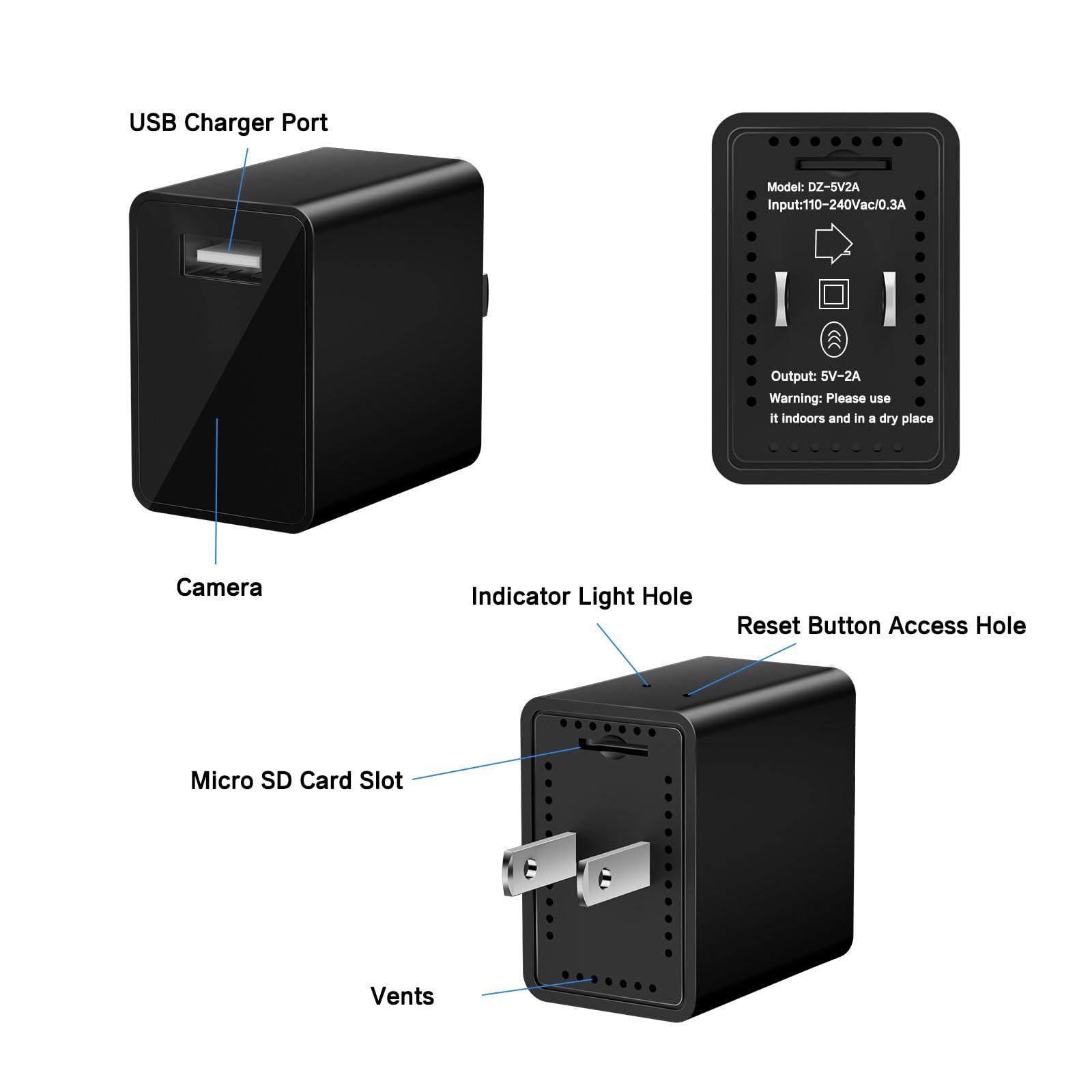 - Private and Secure Local Storage: With support for up to a 256GB memory card (Not Included), this spy camera charger offers secure and ample video storage. Prioritize your privacy with local storage, keeping your data safe and within your control, free from reliance on cloud solutions.