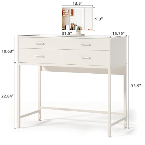 LIDYUK Vanity Desk with Mirror and Lights, Makeup Vanity Desk with Lights, 31.5 Inch Simple Home Office Desk, Small Desk Dressing Vanity Table with Double-Deck 3 Drawers, White