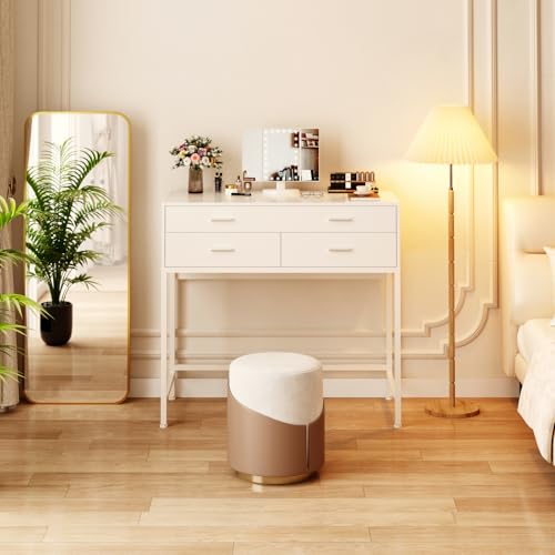 - Store Growing Cosmetics: Nothing feels happier than collecting more and more beauty kits. Hide jewellery, brushes, nail polish, perfumes, powder... in the 2 deep drawers, or place them on the spacious desktop, this dressing table still has room for more