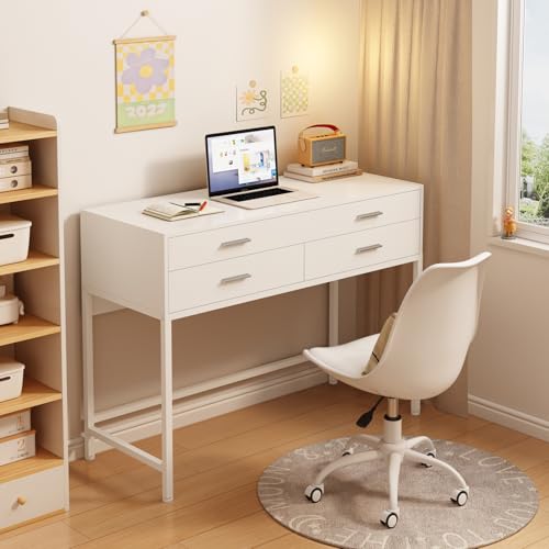 - Sturdy Design Desk: The small vanity desk is made of premium metal frame and E1 particle board to ensure stronger and better load-bearing. This writing desk can hold up to 100 kg/220 lbs. 4 adjustable feet can keep the desk stable on uneven ground and protect the floor from scratches