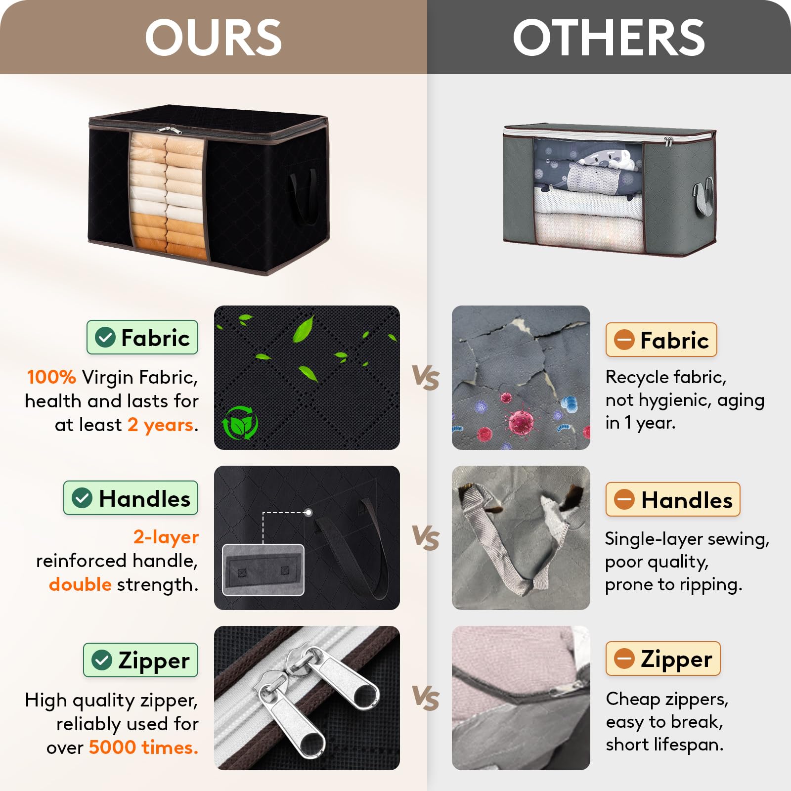 - Sturdy Zipper: Equipped with #5 stainless steel zippers which are hard to be broken, can be used for a longer period of time. And two-way zippers allow it to easily slide along the closure when in use, regardless of how full the blanket storage is