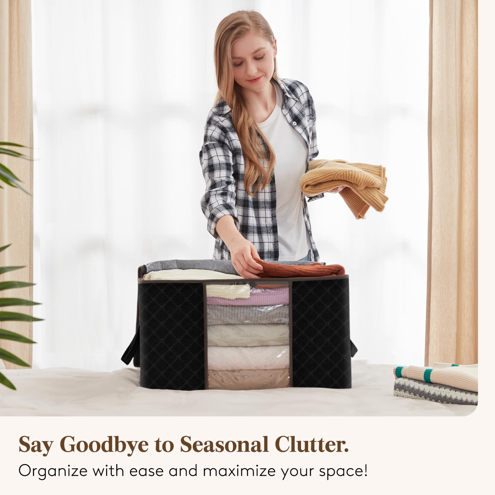 - Save Space: Each clothes storage organizer measures 21.6 x 13.7 x 12.4 inch and has a capacity of 60 L. With its easy-fold design, you can keep your clothes neat and tidy while saving space for storage