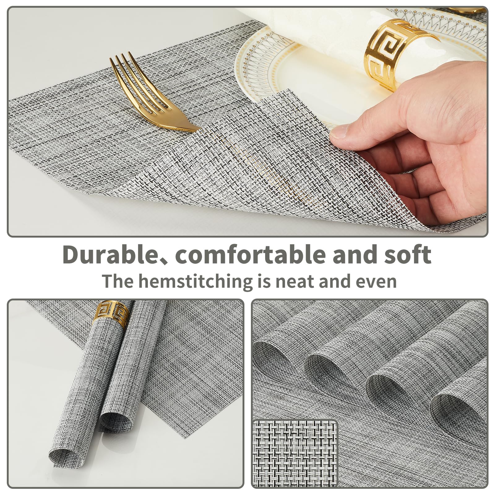 - 【Double-sided Use】With a luxurious vinyl woven texture, non-slip and resist fading,precision cutting and heat-trimmed edges, Elegant and Classic Design, They provide heat resistance 80℃ /176℉ for protect your table, elevating your dining experience