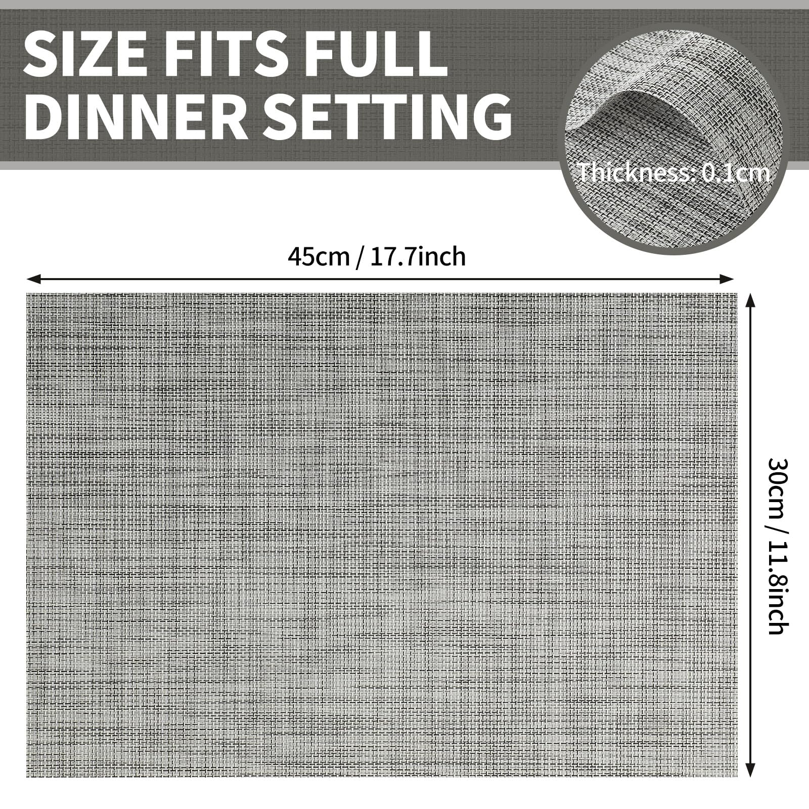 - 【Premium Material】Our placemats are crafted from a superior blend of 68% PVC and 32% Polyester, Heavy-Duty table mat ensuring Premium Quality and long-lasting durability, Endorsed by SGS certification, they are guaranteed to meet the highest standards