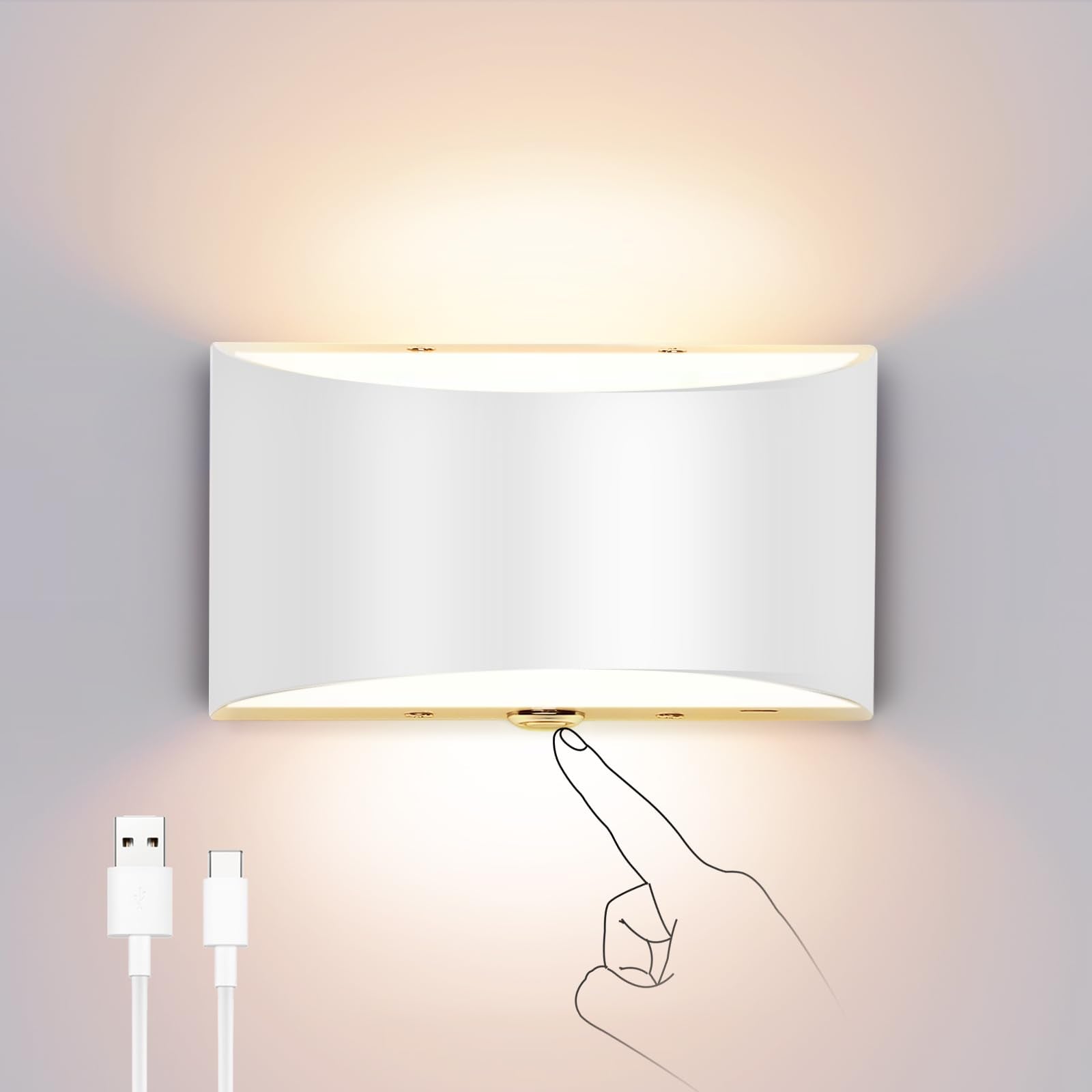Details: Lightess LED Wall Sconce Touch Control Dimmable Wall Sconce, 3000mAh Battery Operated USB Rechargeable Wall Light, Up Down Wall Mount Lamp for Bedroom Hallway Living Room, Warm White