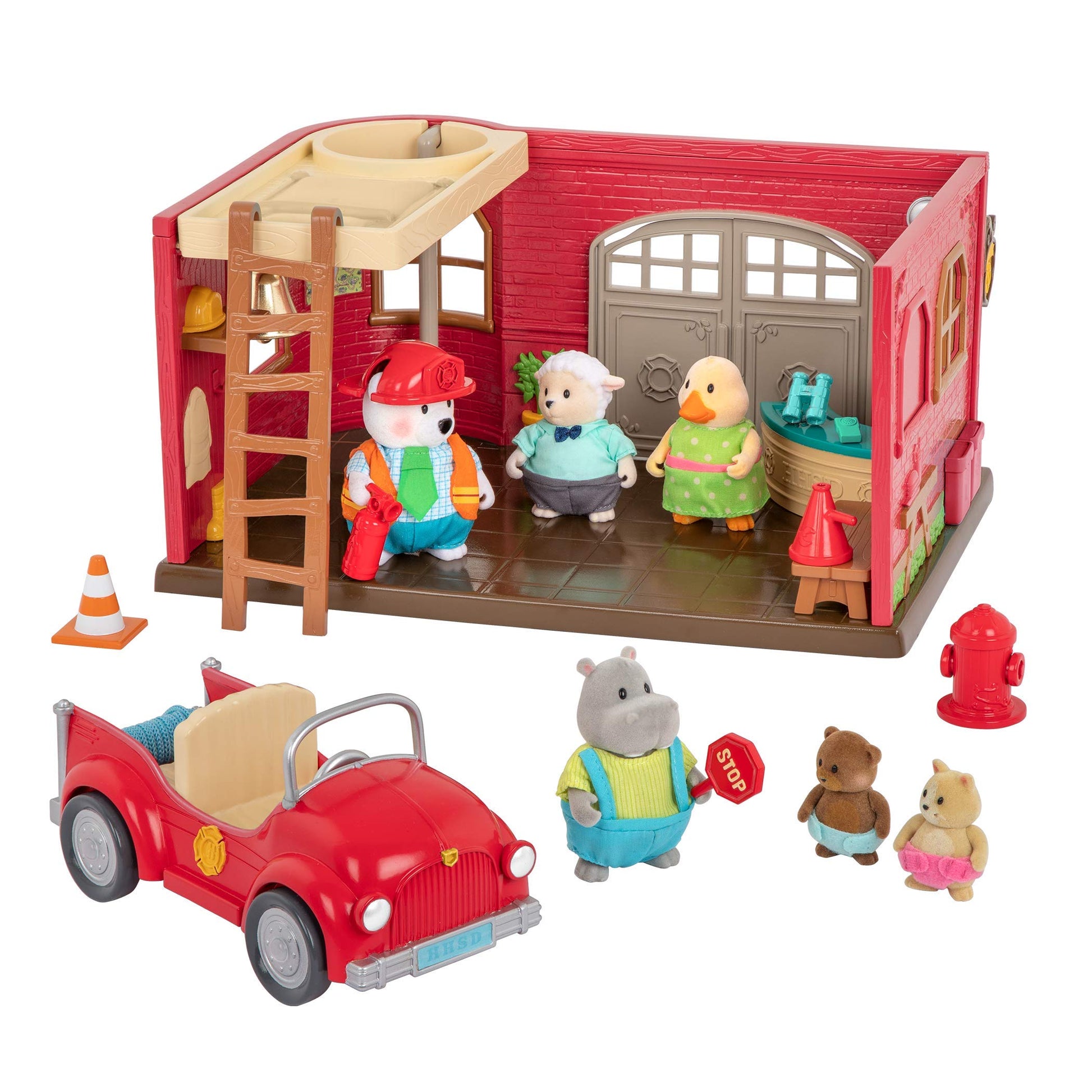 - Fire Department Playset: Li’l Woodzeez Honeysuckle Hollow Safety Department with fire truck and accessories.