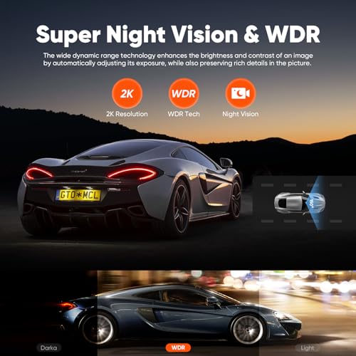 - 【Time-Lapse Recording and Collision Detection】 With 24-hour parking surveillance, when your car is parked, this dash cam will automatically switch to two parking modes. In Time-Lapse recording mode, the dash cam compresses and saves 24-hour footage at 1fps. When a collision is detected, the camera will record a one-minute video, lock it, and save it (requires connection with a Type-C 3-Lead Hardwire Kit, not included).