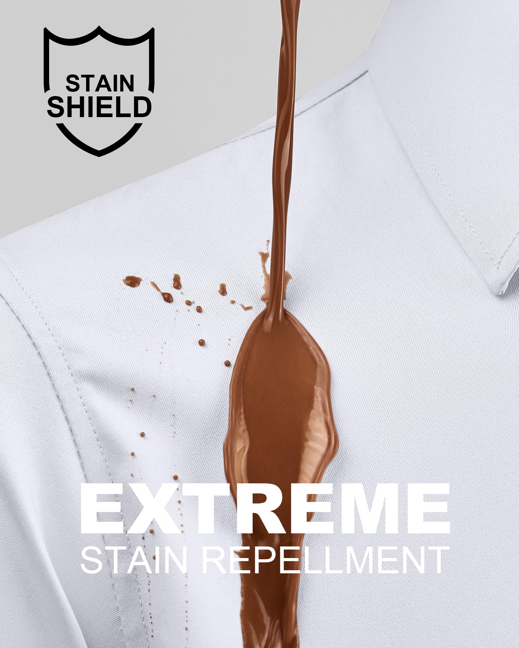- STAIN SHIELD WHITE DRESS SHIRT FOR MEN: Feature innovative fabric that repels stains and oil-based spills, keeping you looking pristine all day without worrying the accidental spills. Experience the peace of mind that comes with our mens white dress shirt