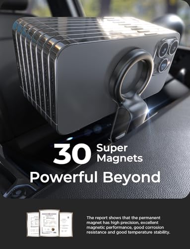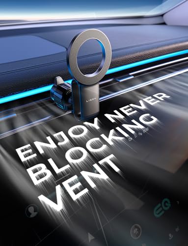 - 【30 Upgraded Magnets】2023 Upgraded Magnet Layout - 60.8% Power Boost! LISEN car mount for MagSafe features 30 upgraded N55 super magnets built-in, capable of securely holding items weighing up to 6.4 lbs. The exceptionally powerful magnets ensure a firm grip on your cell phones, making it worry-free even during strong braking, sharp turns, or rough road conditions.