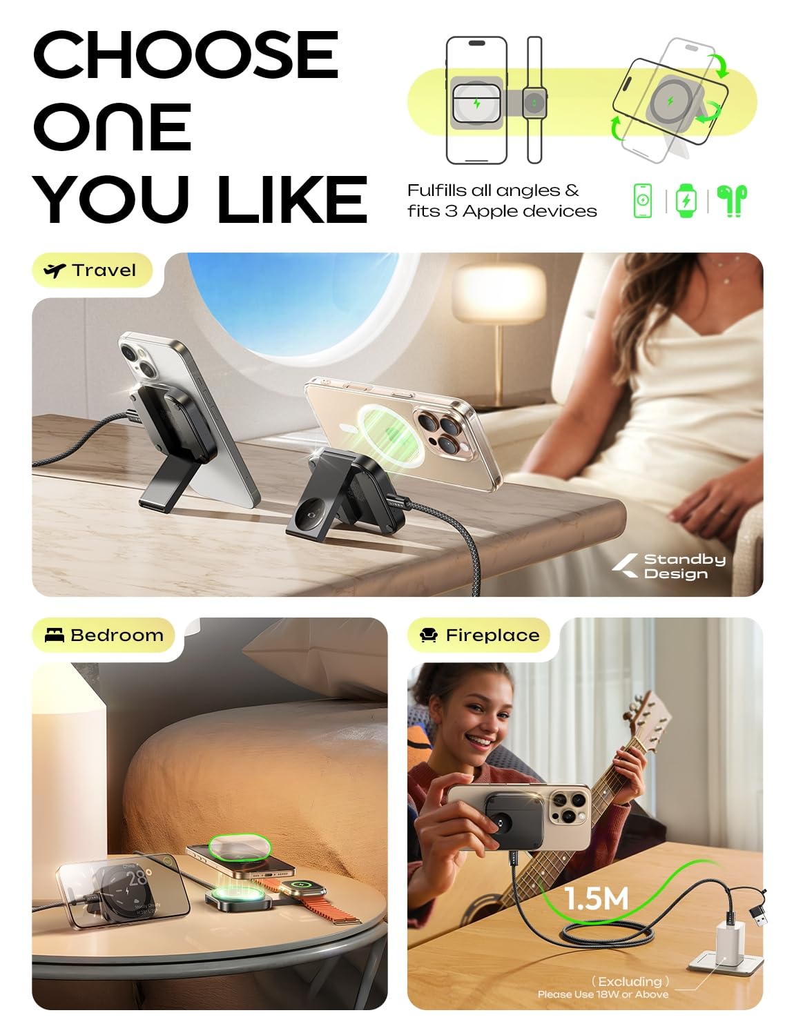 - [2025 New Iteration cargador inalámbrico para iphone] As heavy as an Airprds, 1/3 the size of an for Apple mouse, and as thick as an for iPhone 16. This Magnetic iphone charger by Magsafe combines the advantages of all existing mag safe. charger solutions on the market, based on the 1 generation phone and watch charger station for iphone , with the addition of a new stand for magsafe and support for iPhone iWatch AirPods to charge the whole Apple family. Based on the 2 generation for iphone charger stand , it has achieved even more ultimate travel charger