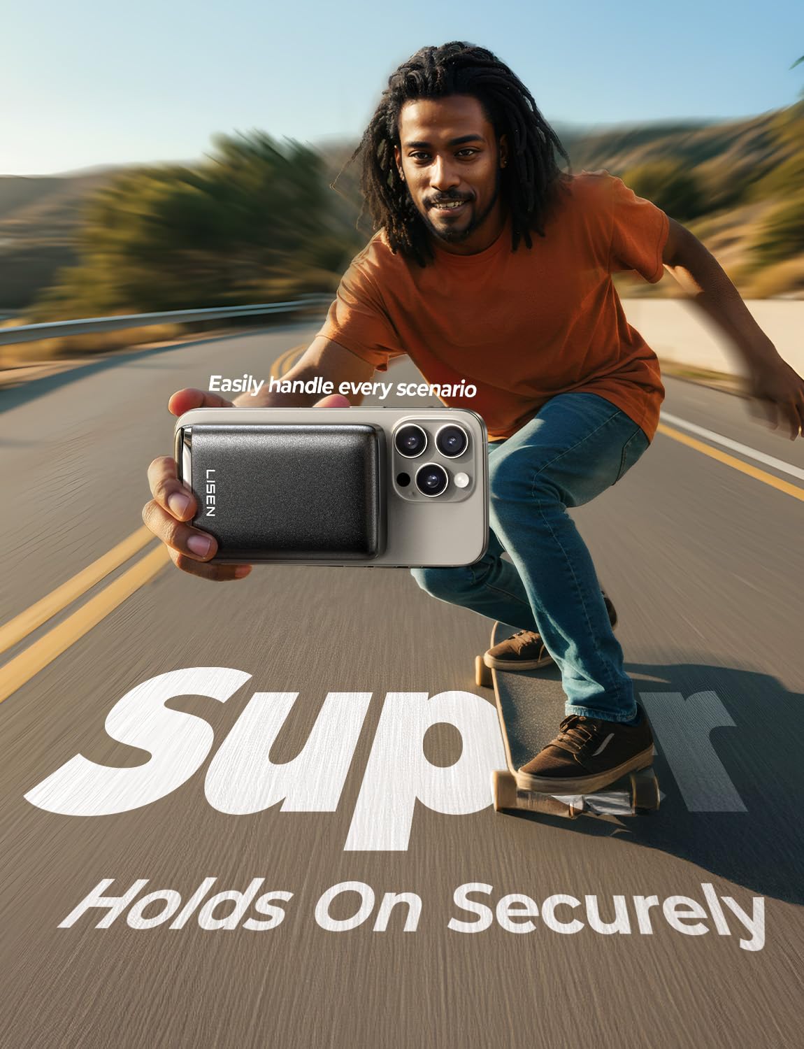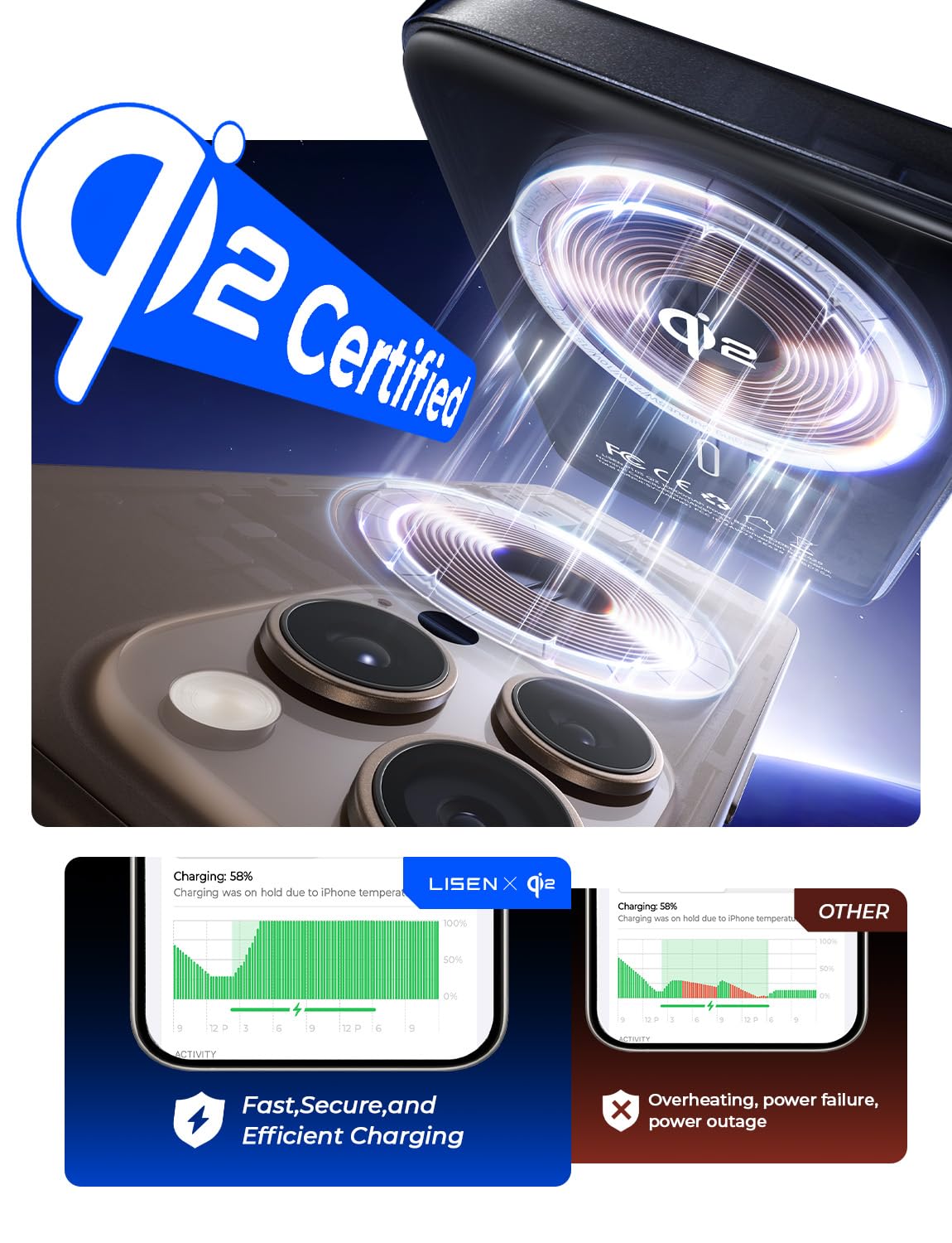 - Top1 Charging Speed in Mini Power Bank:Qi2 LISEN Power Bank is officially certified under the Qi2 protocol, enabling true 15W fast Wireless charging for iPhone devices. Additionally, its built-in USB-C port supports 30W super-fast charging, compatible with iPhone 12-16, Samsung Galaxy S24/S25 series, and other Android devices for rapid power delivery.