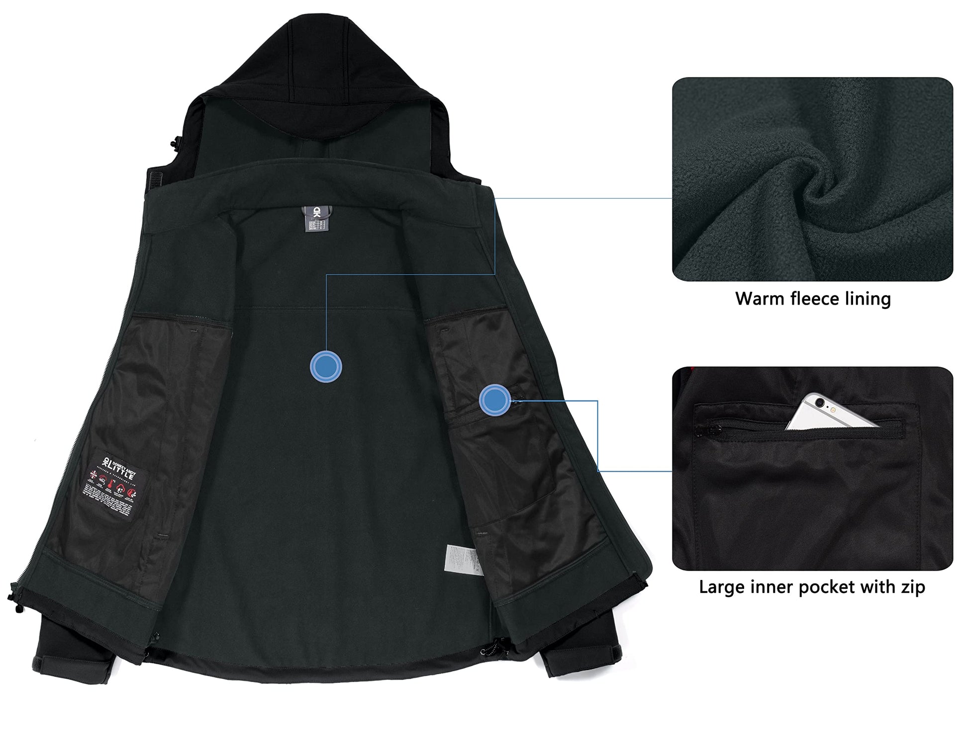 - WARM & WINDPROOF - REMOVABLE HOOD with peripheral cord adjustment help to keep wind out. The lining is Micro Polar Fleece, which traps the warmth effectively and offer next-to-skin comfort.