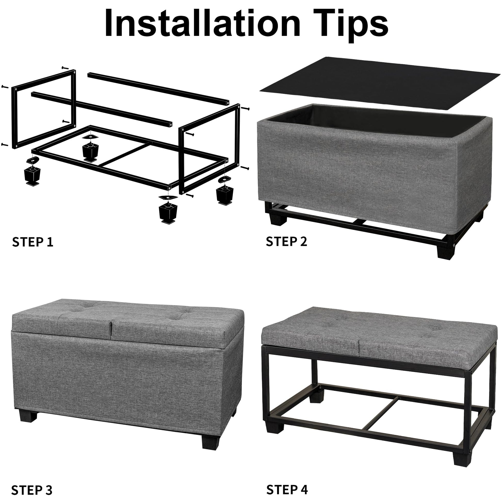 - STORAGE OTTOMAN WITH LEGS: This ottoman features 4 feet, which keep the bottom elevated and clean. Each foot is equipped with a non-slip pad, enhancing stability and preventing floor scratches.