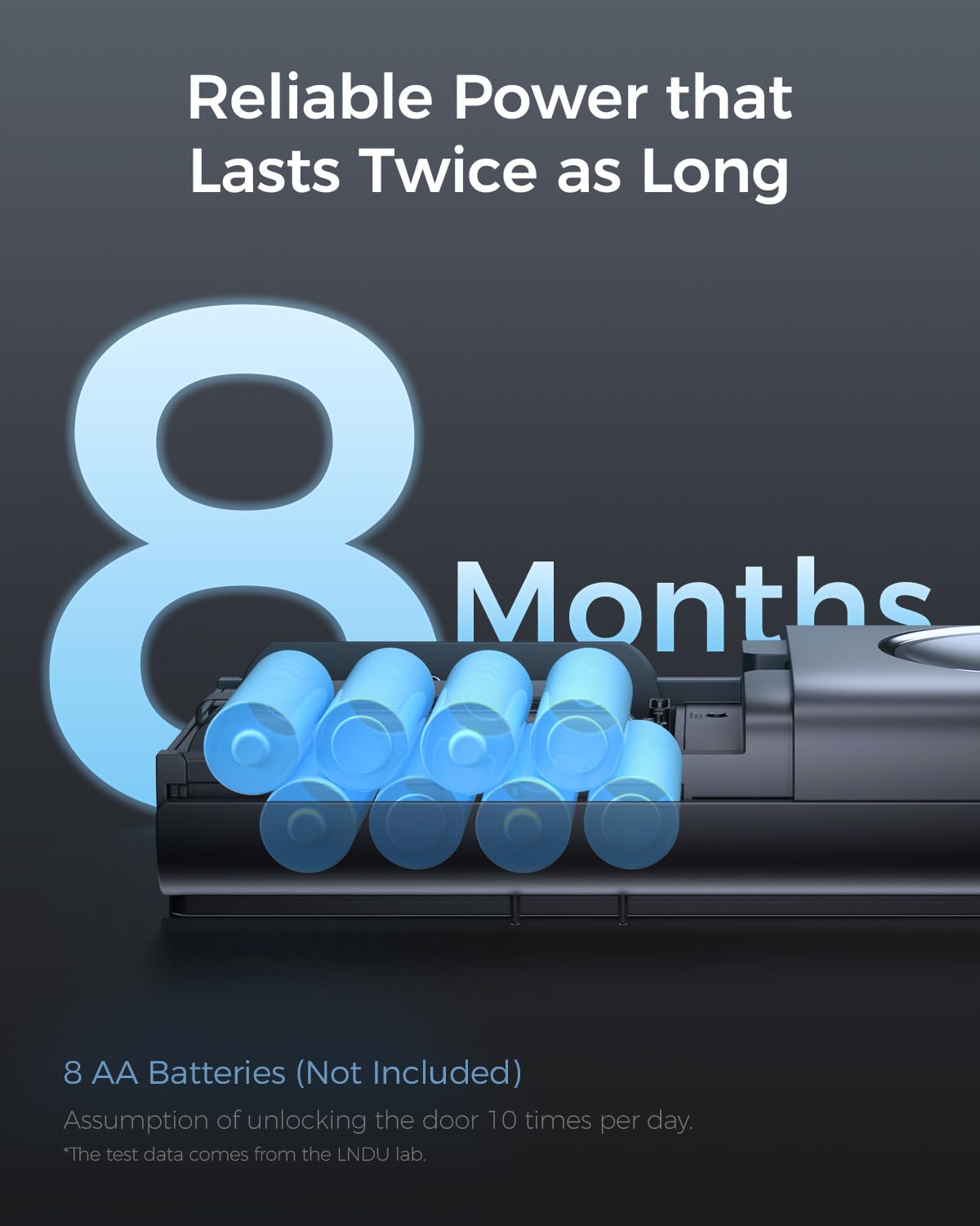 - 【Long-Lasting Power with Emergency Charging】Powered by 8 AA batteries (8-month lifespan), the WiFi door lock alerts at low power. The Type-C emergency port lets you recharge during outages, ensuring uninterrupted keypad deadbolt access year-round.