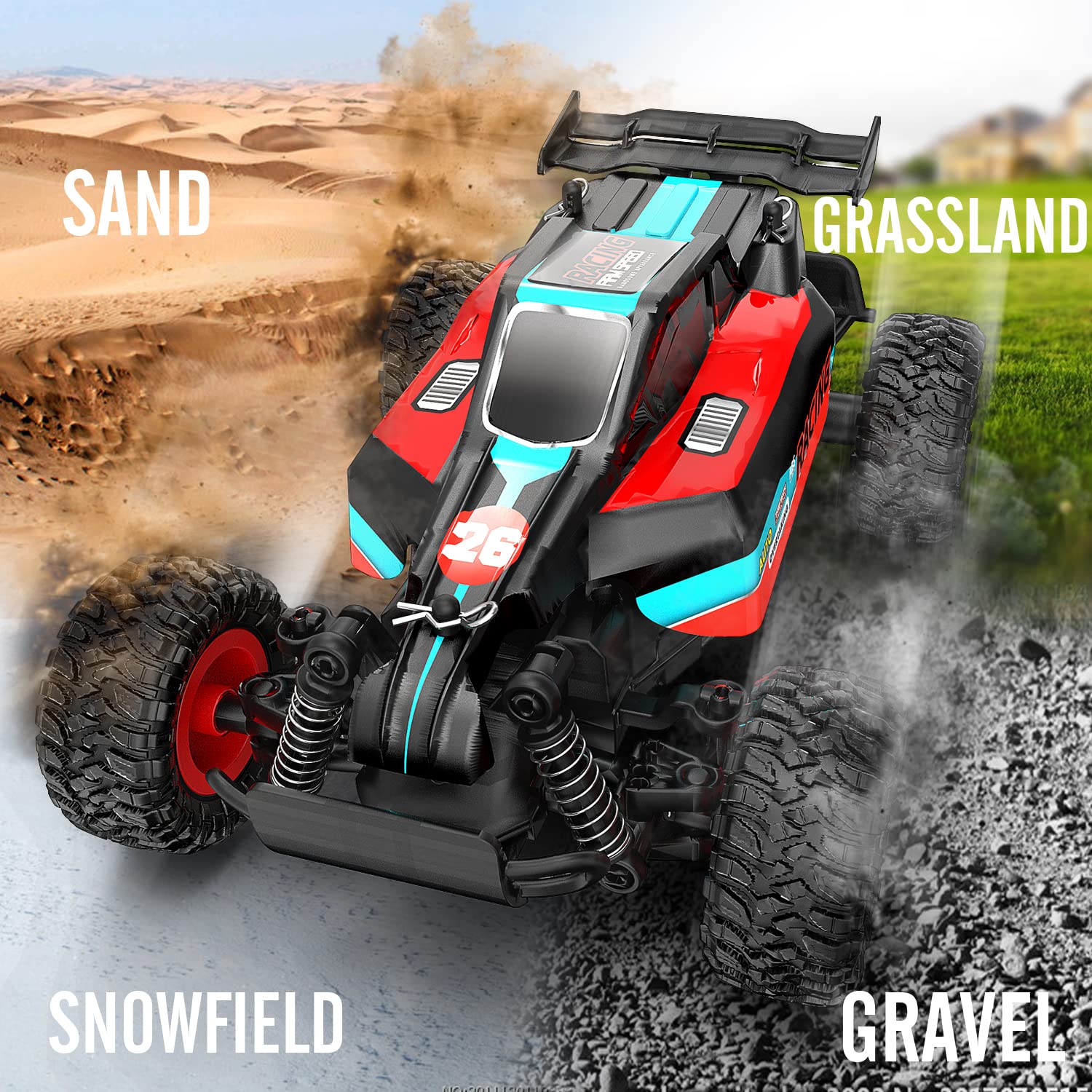- 【INDEPENDENT SHOCKPROOF SYSTEM】The Remote control Buggy has the separate rear suspension and the independent front wheel suspension with metal shock absorbers.The suspension allows for perfect outdoor use.