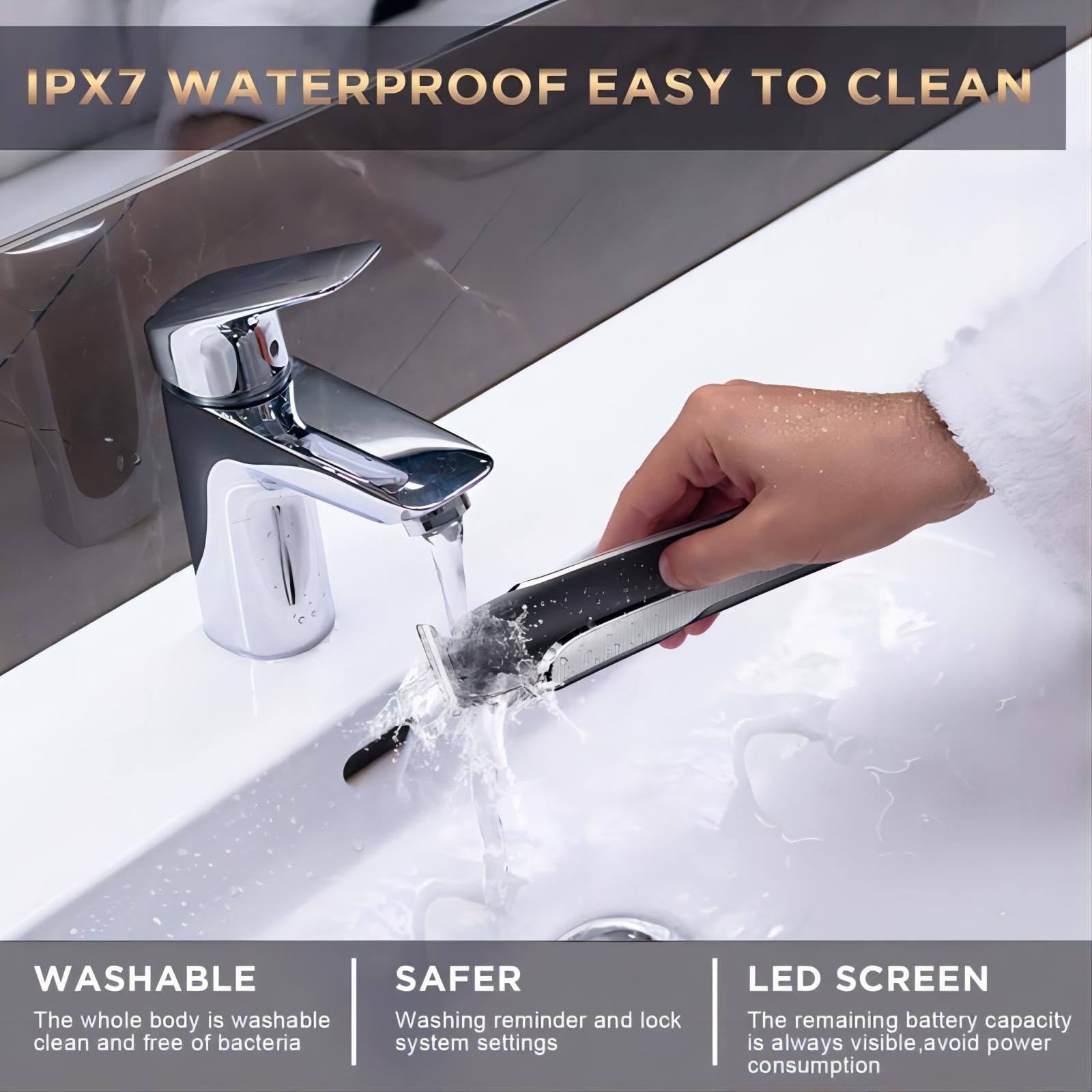 - IPX7 Washable & Ergonomic Design: Lopeie beard trimmer for men is designed to be fully washable, making it easy to clean after use. The smooth curved handle adopts ergonomic design, which is convenient to hold and not easy to slide