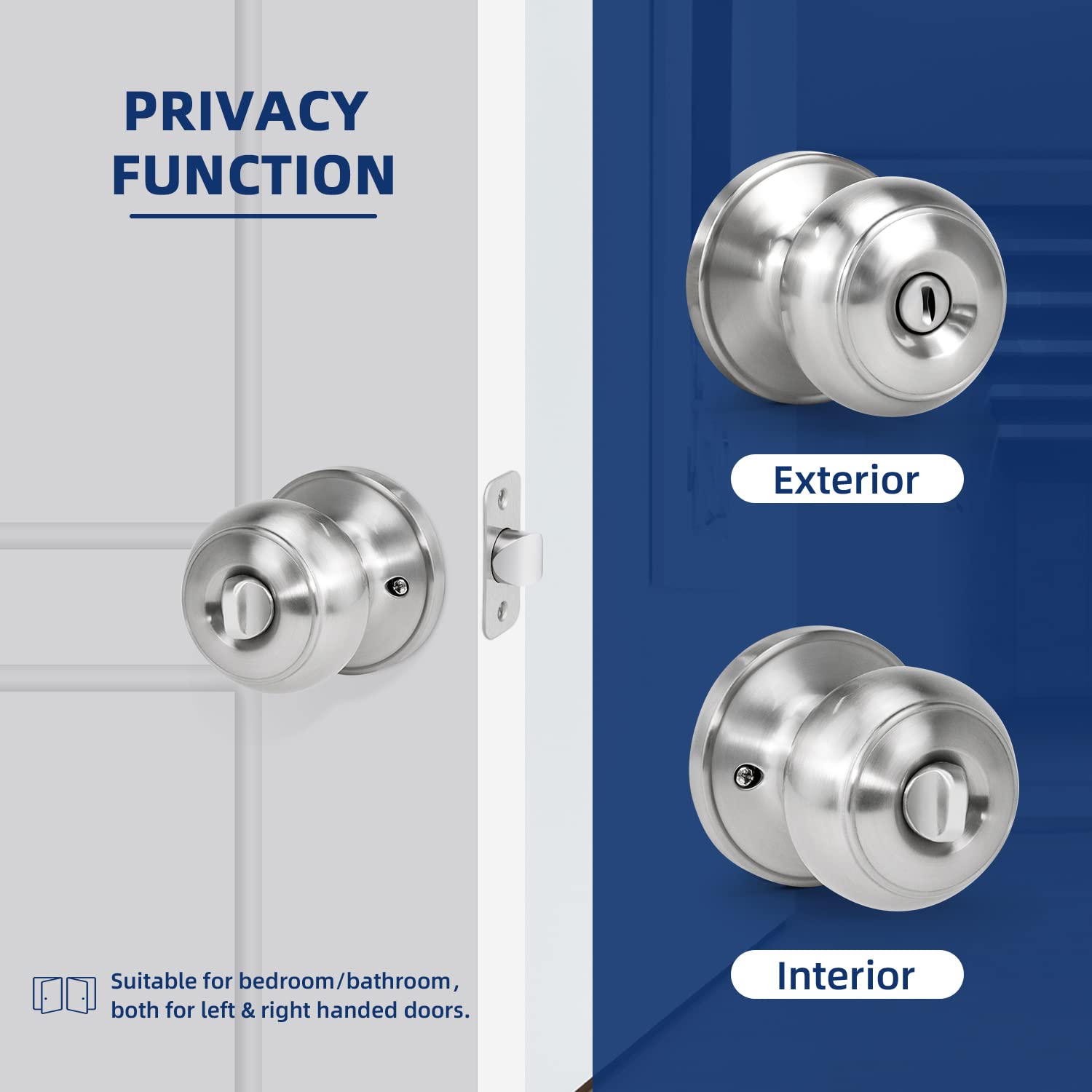 - 【Widely Application】 Privacy door knob WITHOUT KEYS ideal for your bedrooms, bathrooms and other privacy needs.Exterior privacy release button that unlock with coin or standard screwdriver only need. It be sure to add a touch of sophistication to your home.