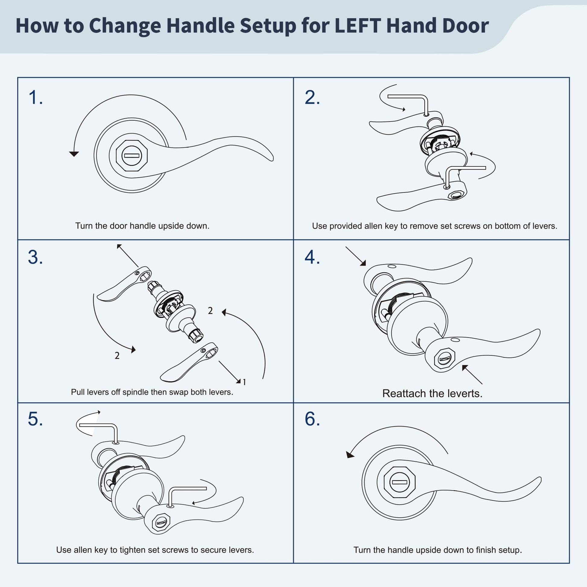 - 【Reversible Lever】Wave style reversible lever flexible for both left-hand and right-hand doors. The interior lever can be removed from the rosette assembly and switched with the exterior lever, preventing the levers being upside down after installation, ensuring a seamless appearance.
