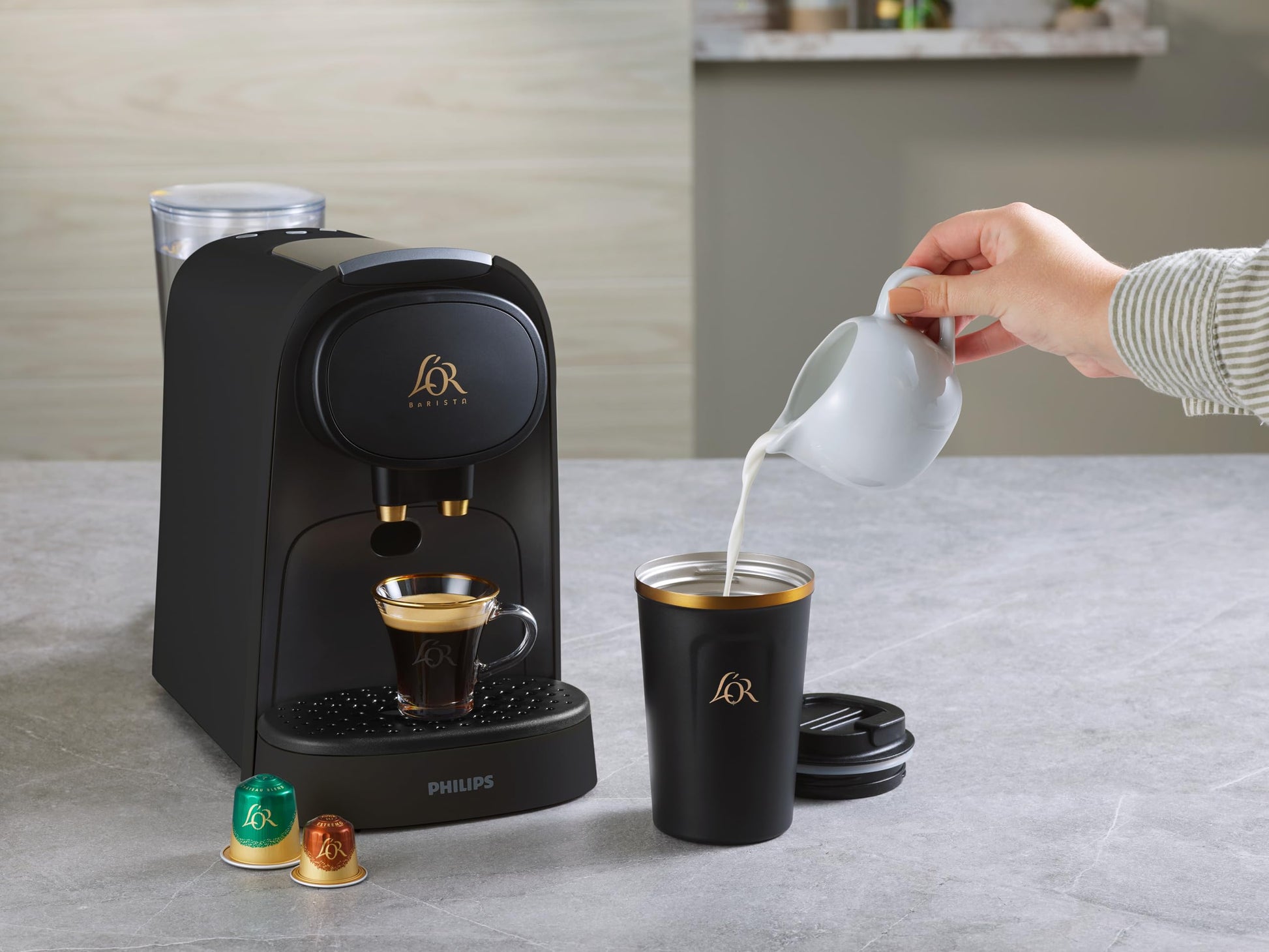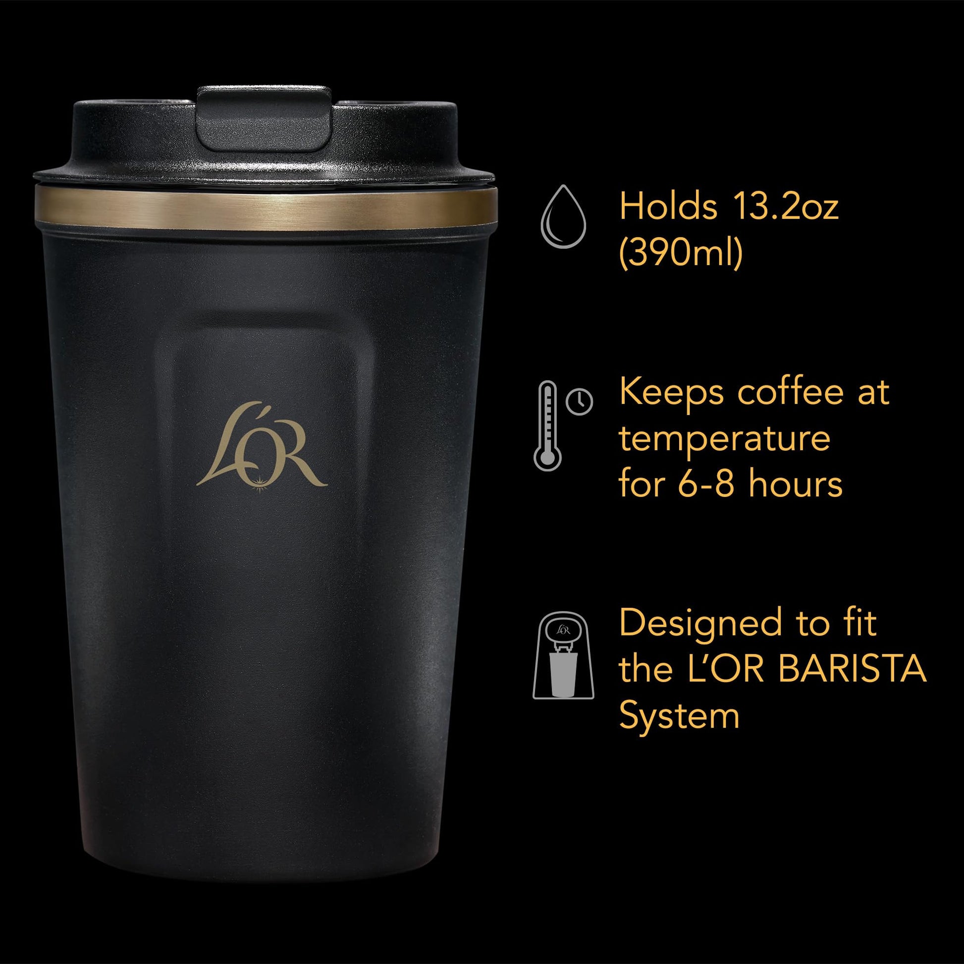 - Compatibility: Designed to fit under the L'OR BARISTA system single-serve brewer; enjoy L'OR or Peet's Coffee capsules while on the move.