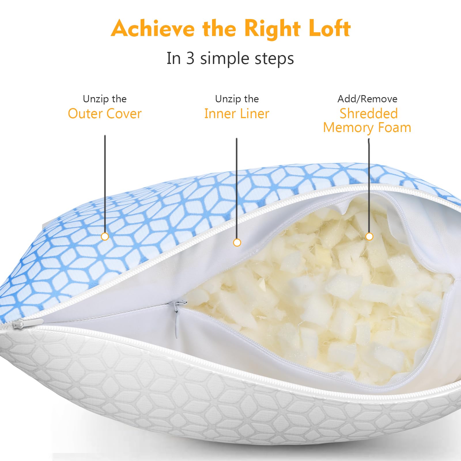 Love Attitude Pillows Queen Size Set of 2, Queen Pillows 2 Pack for Bed Shredded Memory Foam Pillows Adjustable, Cooling Pillow Soft and Supportive for Side Back Stomach Sleepers