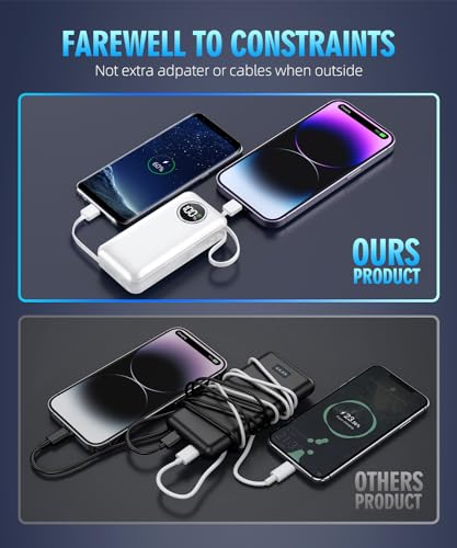 - Power bank with built-in IOS cable and Type-C cable. With very compact shape, portable charger is convenient to carry go out.