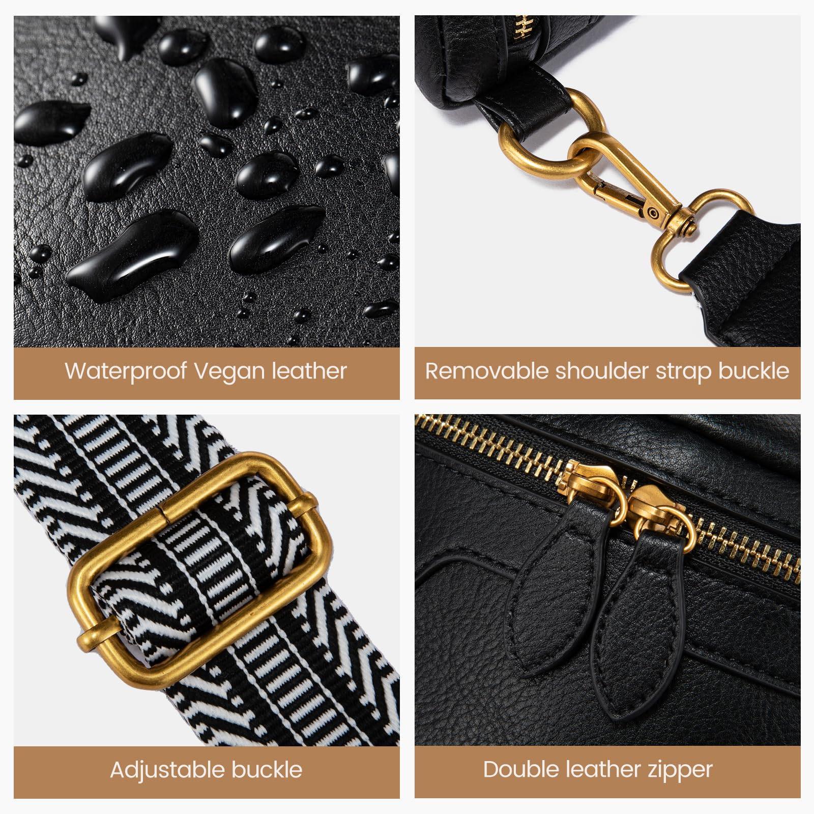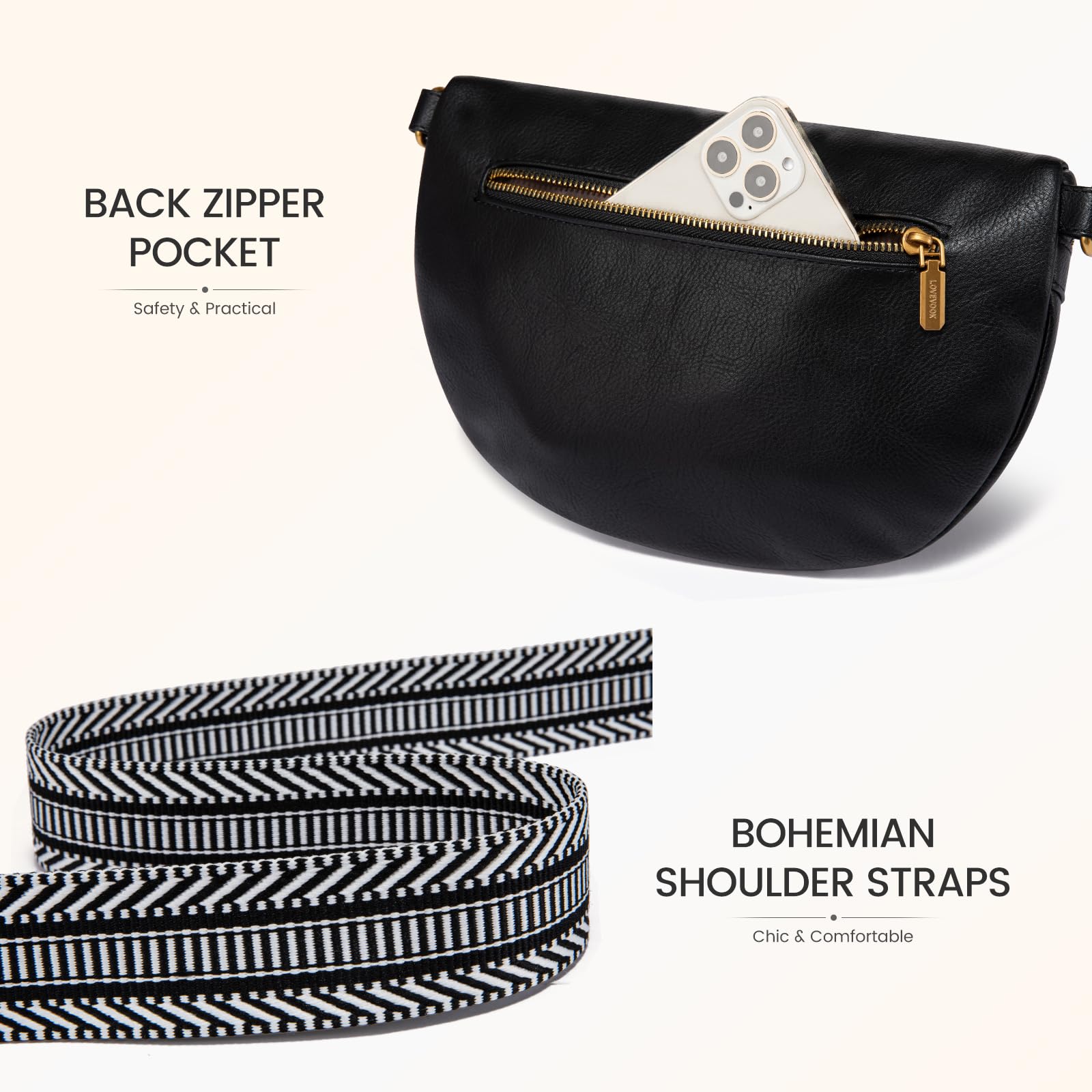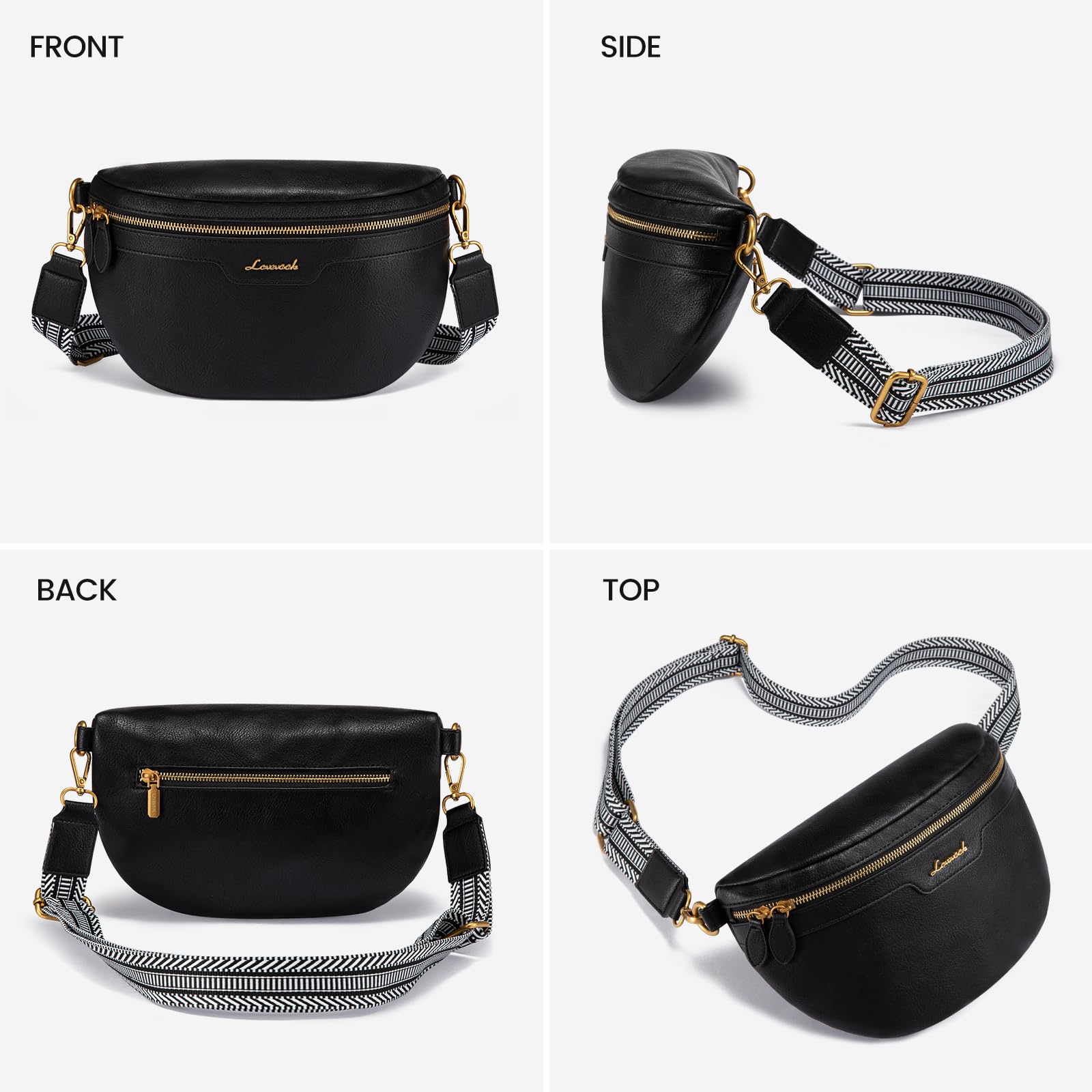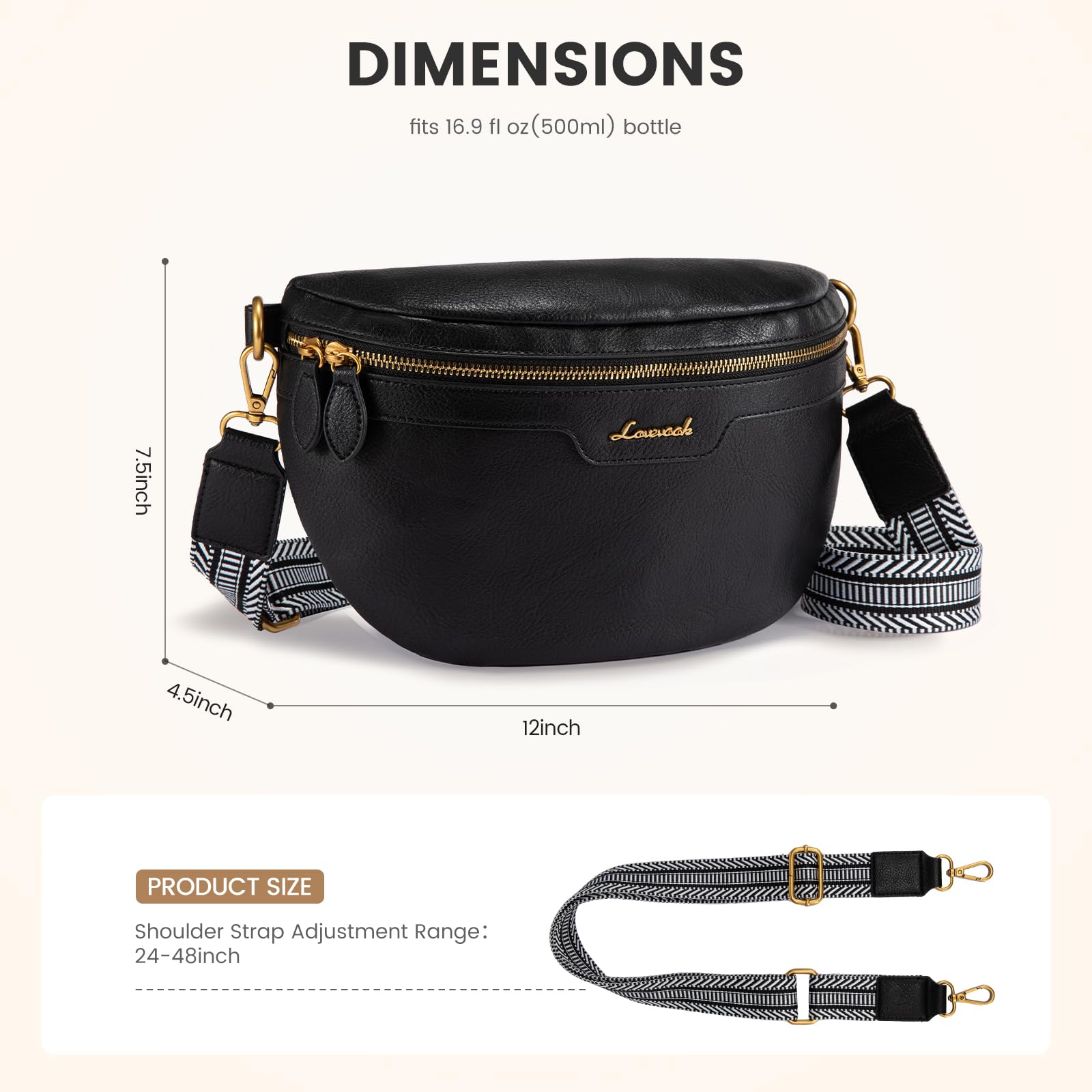 - FASHION CROSSBODY FANNY PACK FOR WOMEN: Crafted from high-quality, eco-friendly vegan leather, this cross body bag is waterproof, soft, and highly durable. The leather fanny pack features an adjustable bohemian-style shoulder strap for unmatched comfort and style, complementing any outfit. Available in various sizes and colors, it meets both your storage needs and fashion preferences