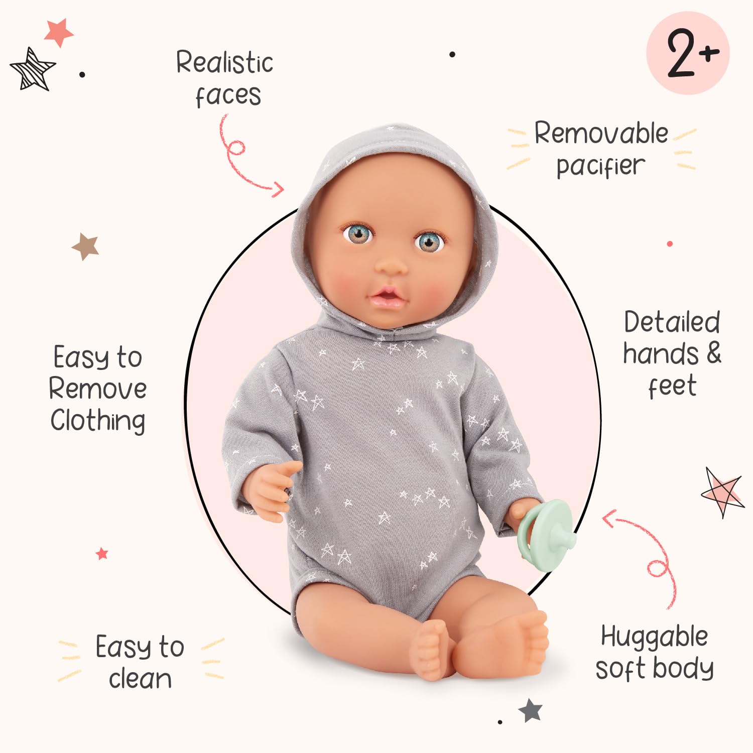 - 14” Baby Doll: This LullaBaby doll has a star-print jumper outfit with an extra-large pacifier and a cuddly soft body made for little hugs.