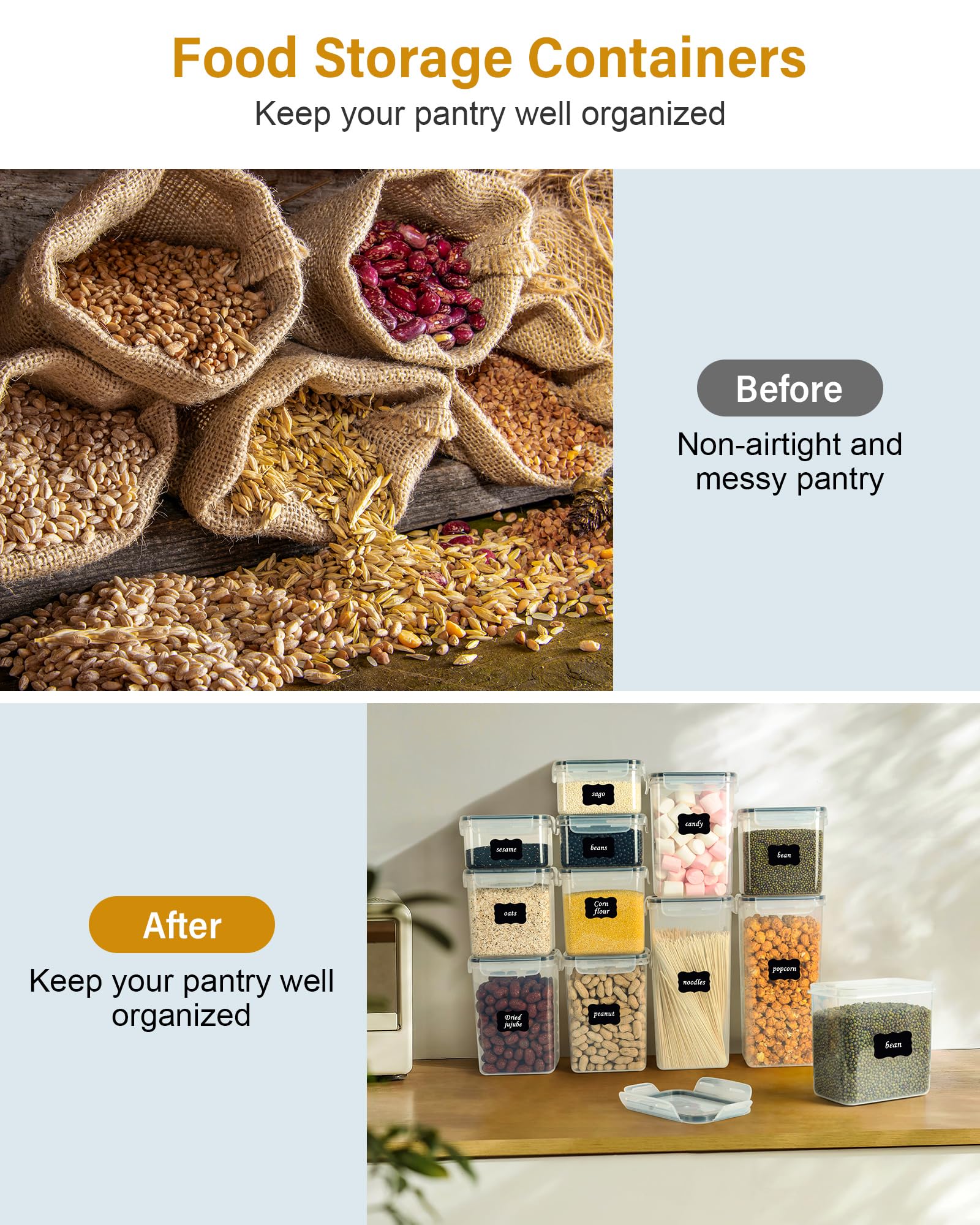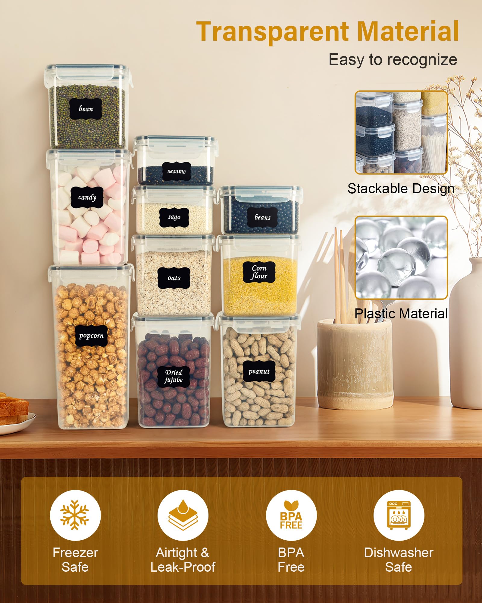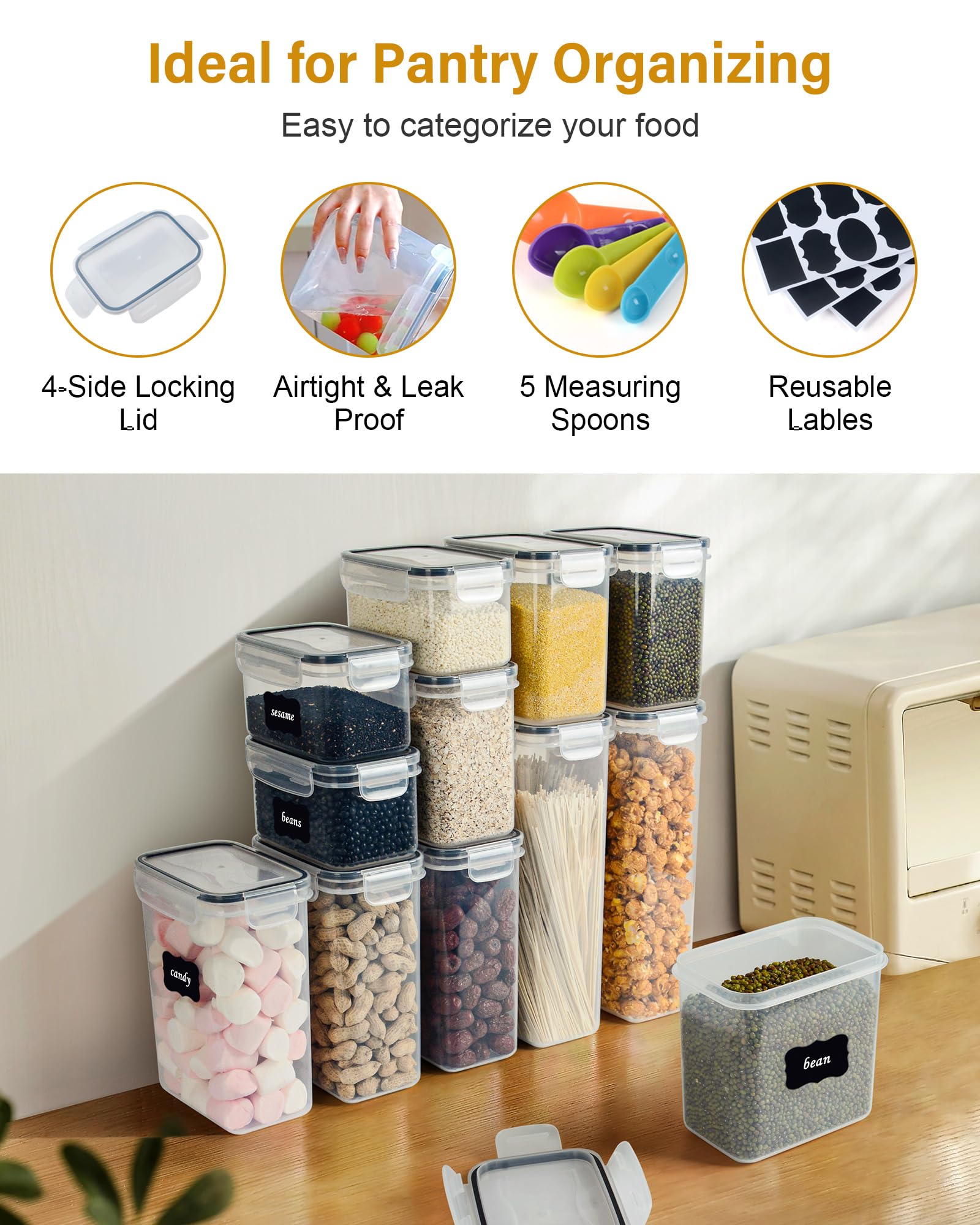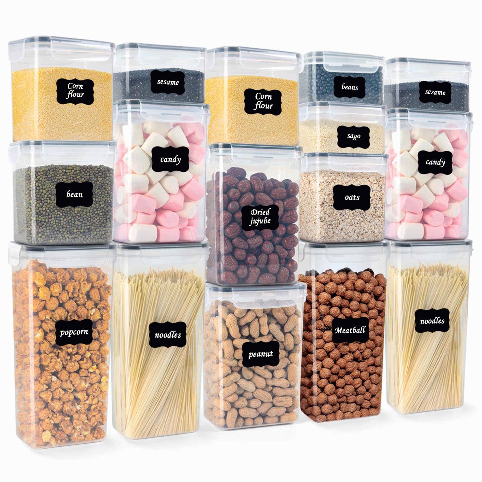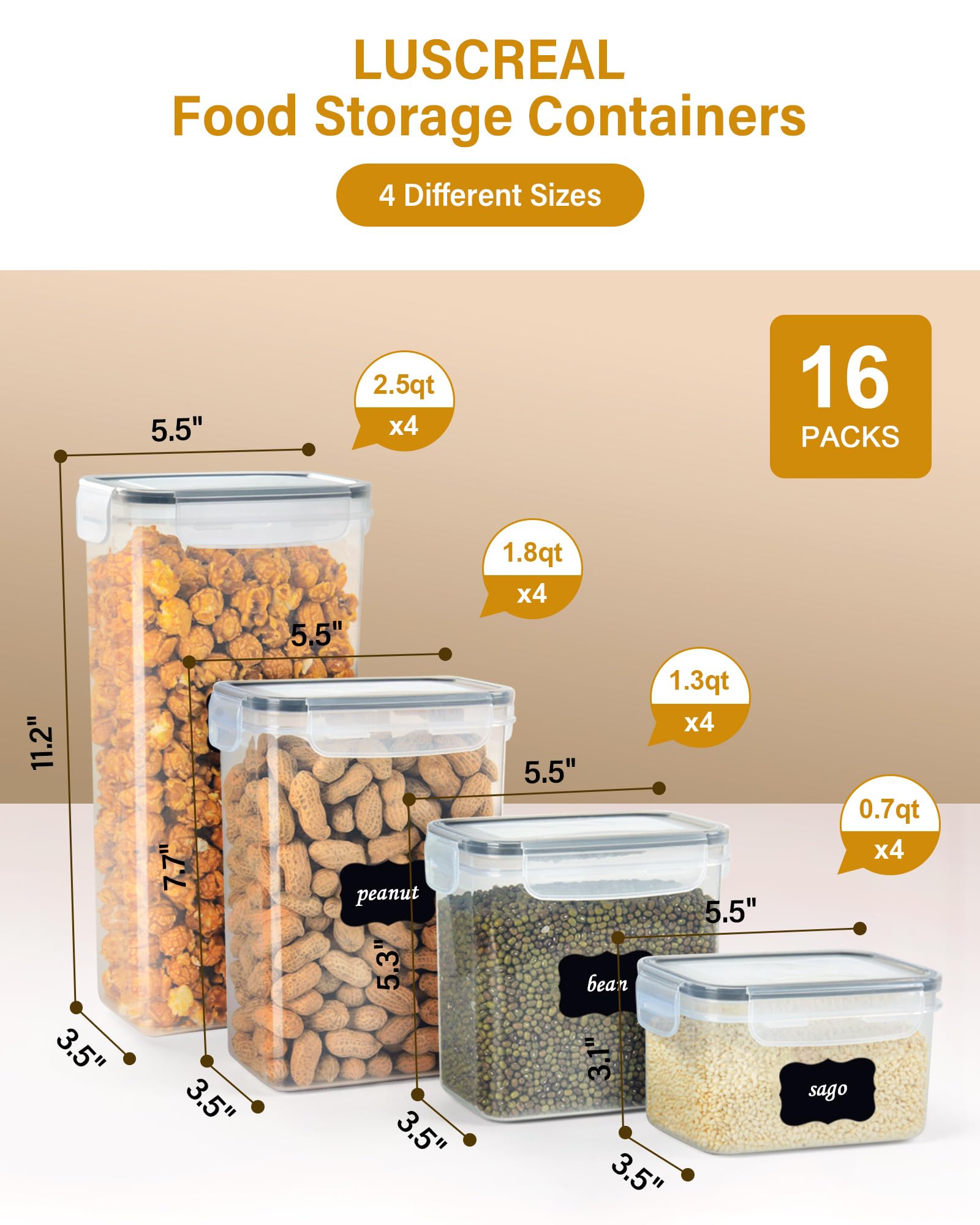 LUSCREAL Airtight Food Containers with Lids, 16 pcs Cereal Containers Storage Kitchen Storage, Plastic Kitchen Organizers and Storage for Dry Food, Flour and Sugar,Include 20 Labels and 5 Spoons