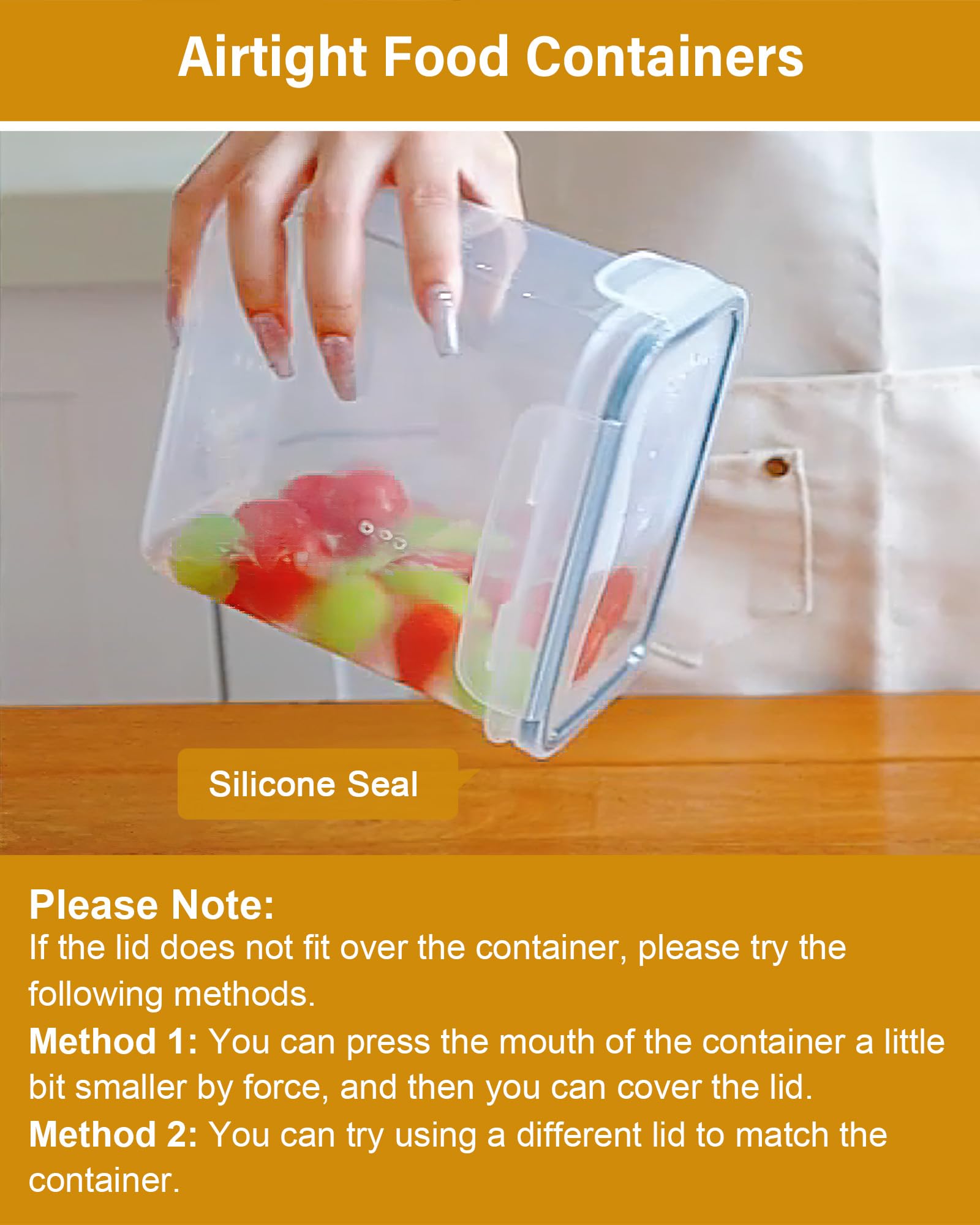 - Food Containers with Lids: Keep Your Food Fresh with Airtight Containers, Our plastic storage containers with lids feature side-locking mechanisms and silicone gaskets, ensuring an airtight seal to keep your food dry and fresh.