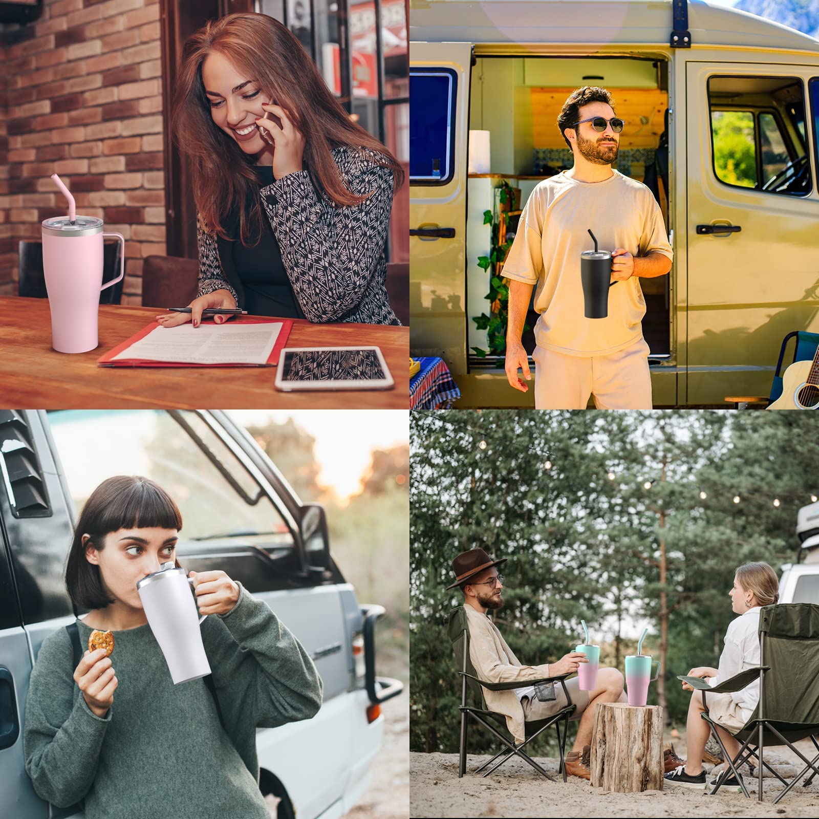 - Multifunctional lids & durable carry handle - The 50 oz cup with handle features of our 2-in-1 unique lid make these thermal mugs incredibly versatile: drink with straw or sip with spout.