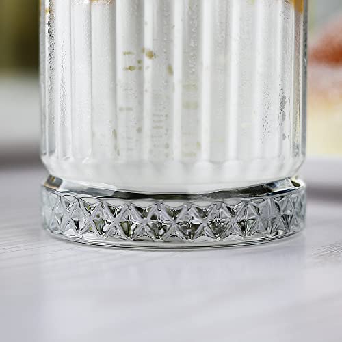 - MODERN YET TIMELESS - These highball glasses dawn a contemporary look that is perfect for entertaining and everyday use. With their sleek silhouette and stripe design, this tumbler glass set is versatile enough for casual and formal use.