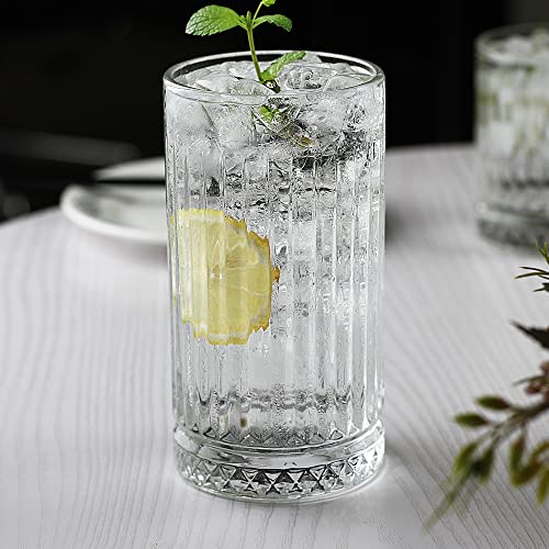 LUXU Highball Glasses 14 fl.oz,Set of 6, Lead-free Drinking Glasses with Heavy Base,Premium Collins Tumblers for Water/Juice/Cocktails/Beverages,Beautiful Striped Look Glassware,Dishwasher Safe