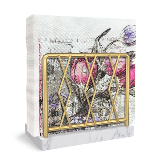 LWSFF Napkin Holder for Table, Elegant Marble Standing Napkin Dispenser for Kitchen Dining Modern Cocktail Picnic Bar, Metal Tissue Holders for kitchen Suitable for All Dining Room Decors Gold