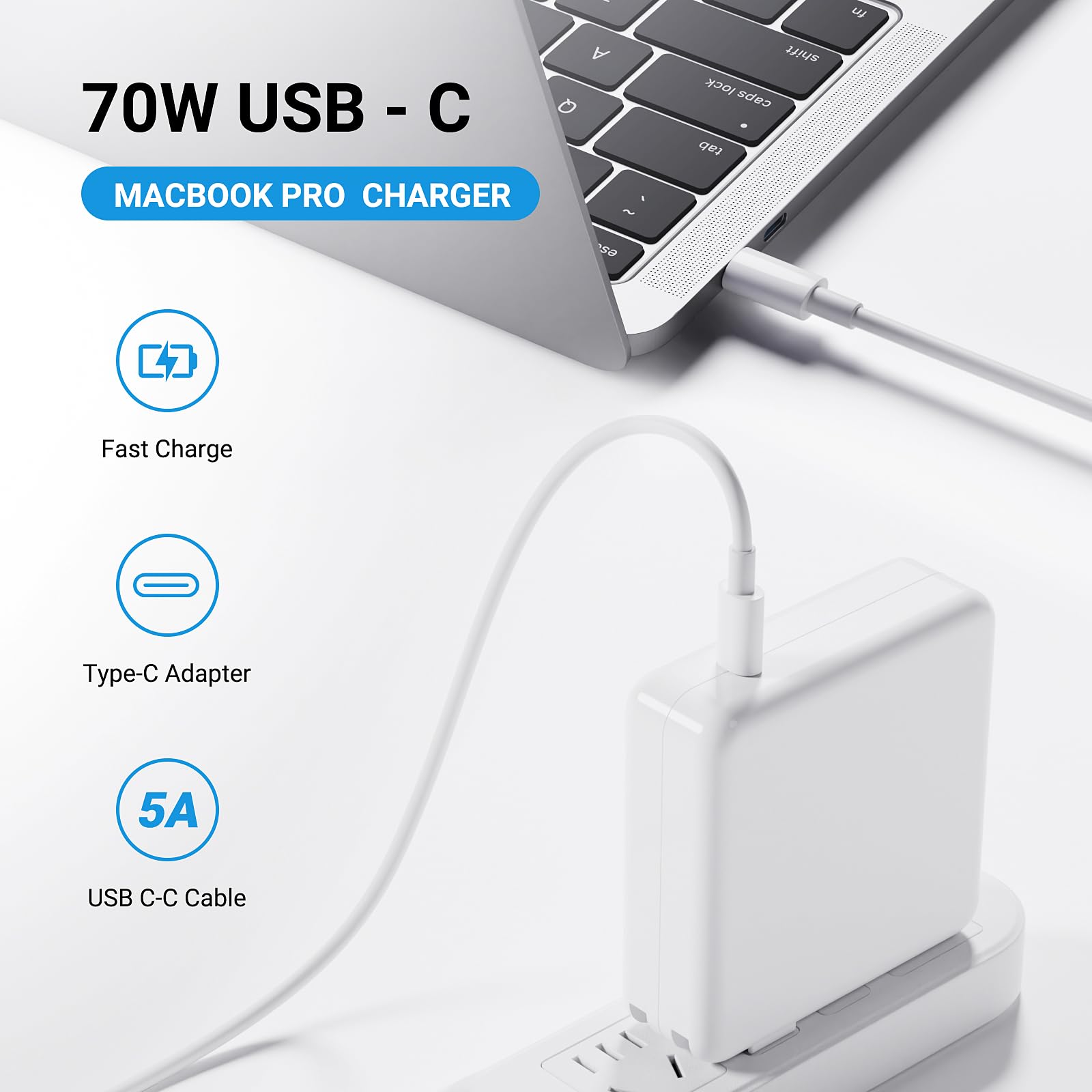 - High-efficiency Fast Charger: The 70W USB C macbook pro charger can automatically identify equipment and provide the fastest and most effective output current,charging efficiency of up to 96%Whether at home, in the office or on the road, this 70w USB C charger allows you to charge quickly and efficiently without compromising its service life and performance.