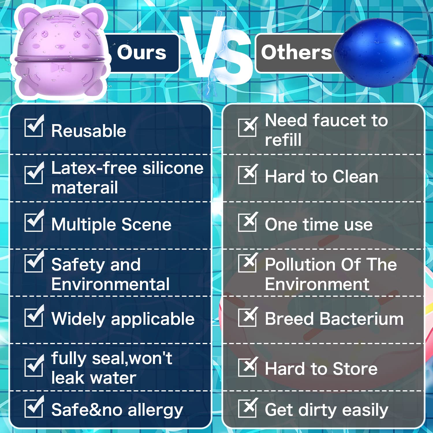 - Quick and Easy to Fill: These water balloons are designed with an innovative self-sealing feature, which means they can be filled with water and tied off in just a seconds. This saves you time and hassle, and ensures that you're always ready for spontaneous water games.
