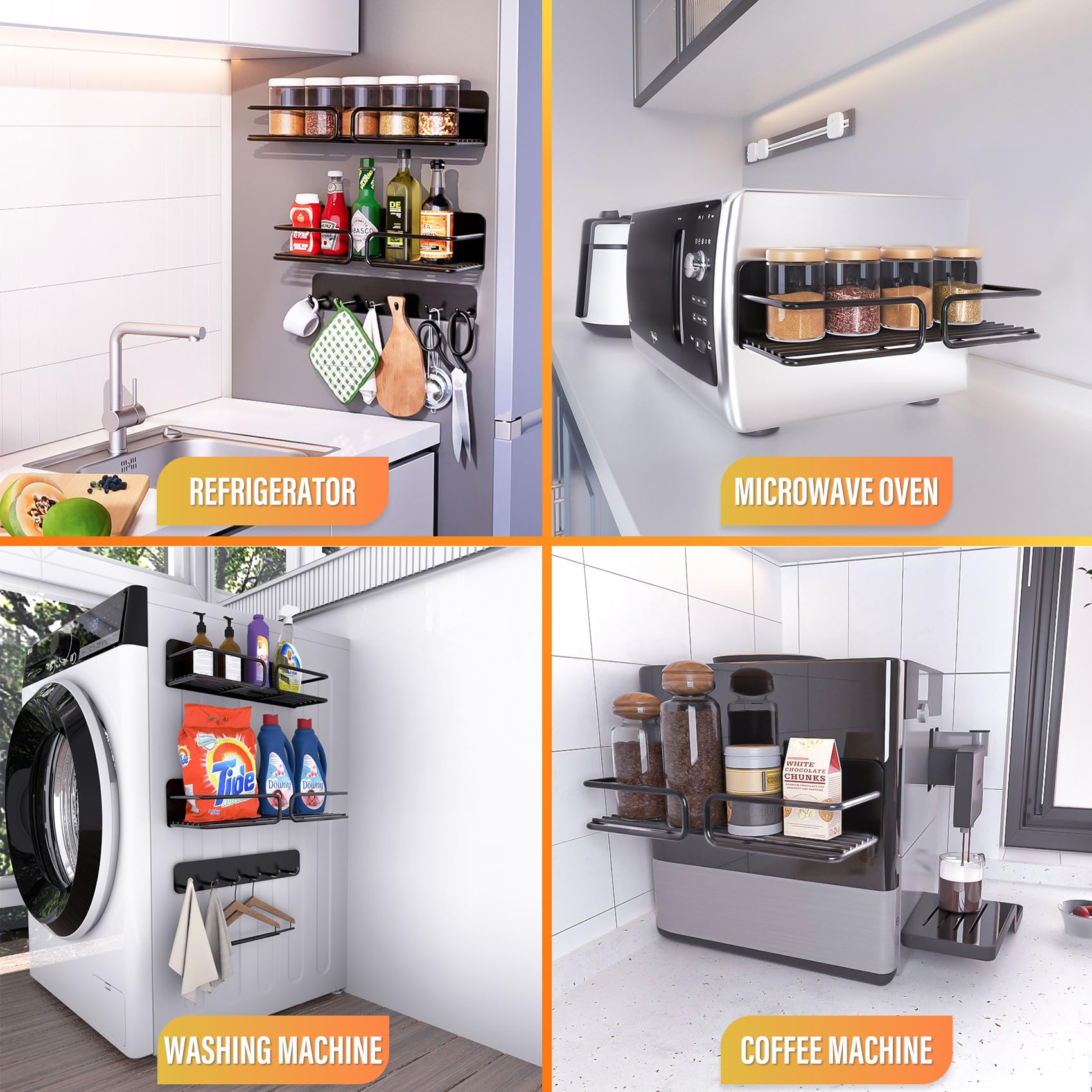 - 【Suitable for Various Scenarios】Magnetic spice rack can be adapted to a variety of different iron surfaces. You can attach it to coffee makers, washing machines, refrigerators, and iron cabinets. Meet your different storage needs.