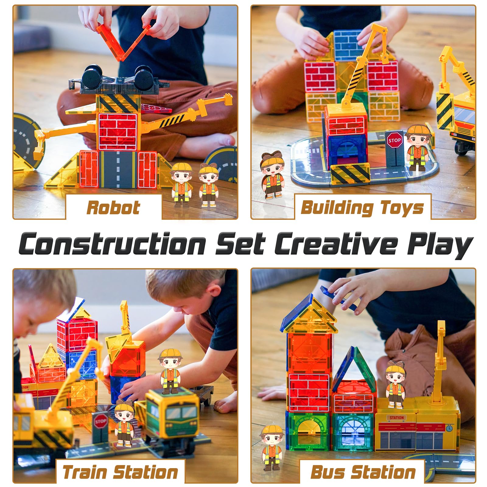 - 【IDEAL GIFT】The construction toys are the perfect birthday or Christmas present for kids, providing hours of fun for budding builders to take charge of their construction site and haul magnetic tiles, iron car toys, and anything else they can imagine! Great gifts for kids 3 and up, as an alternative to dolls, car toys, dinosaur toys, or a train set