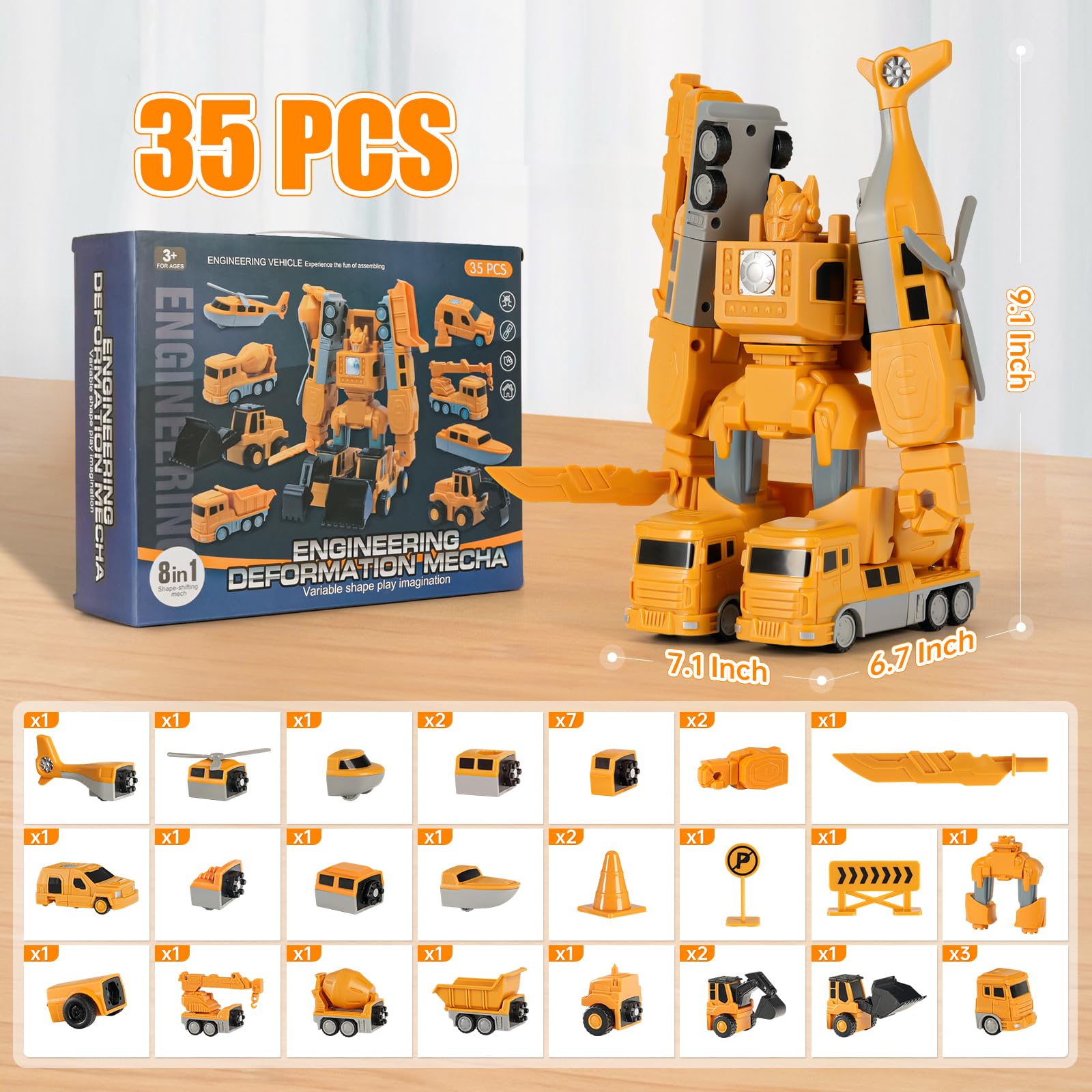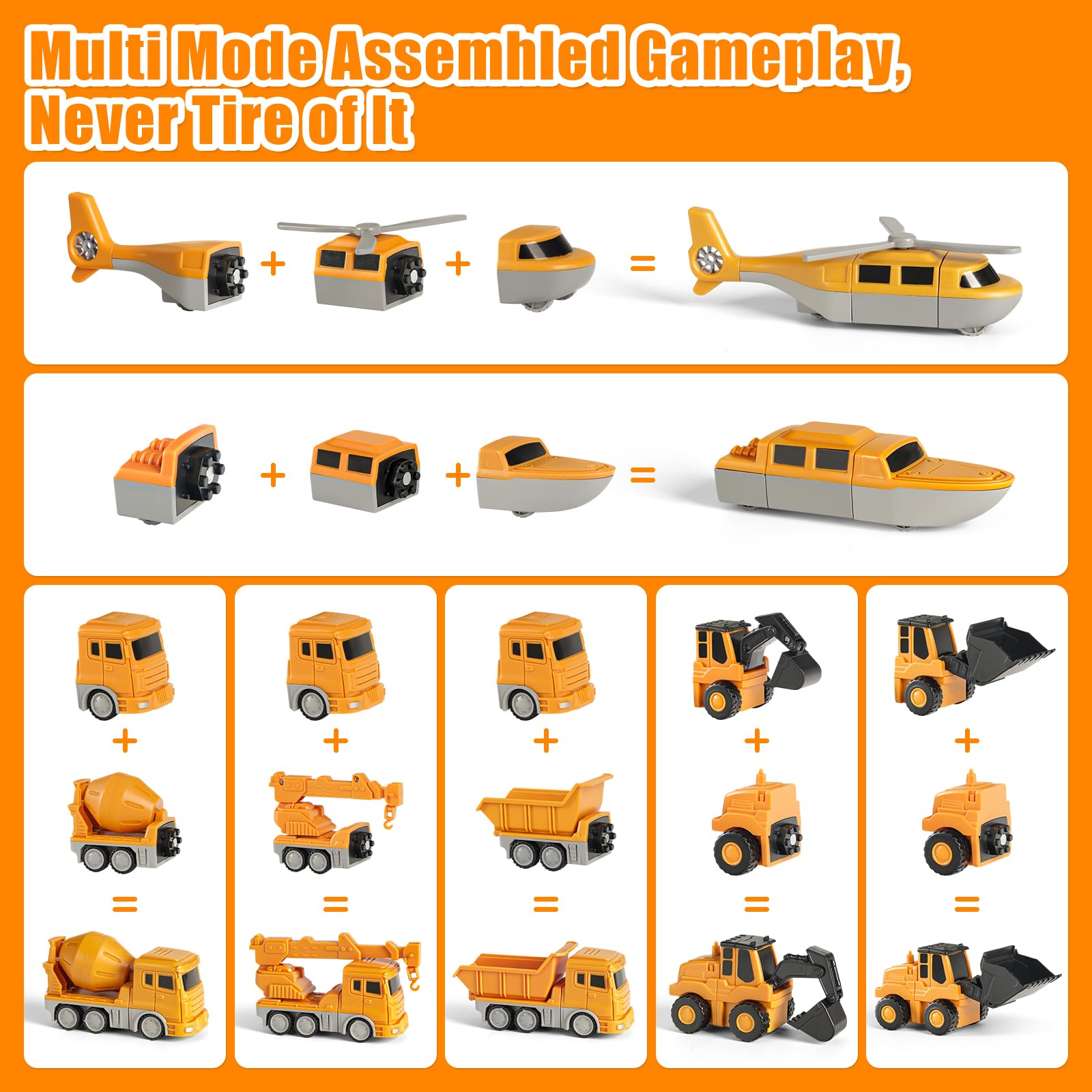 - [35pcs Magnetic Toys] Free combination of cool robots, and can also be assembled into cars, cement trucks, dump trucks, helicopters, speedboats, forklifts, excavators and cranes, a variety of combinations are free to create, such as speedboats with propellers, extended cars, etc.
