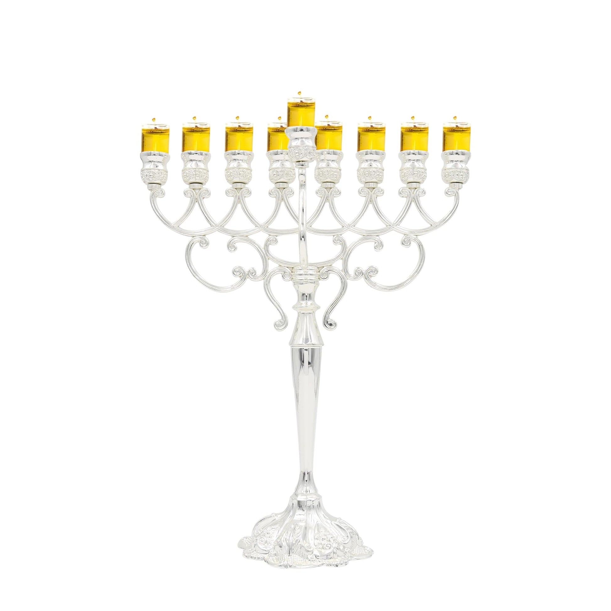- π CLASSIC MENORAH STYLE: With its large menorah design, you'll find generously sized oil cup holders, ensuring convenience and functionality. This Menorah's classic and traditional design adds a timeless touch to your festivities. As you light the Menorah, its design becomes a symbol of cherished tradition, enhancing the beauty of your celebration.