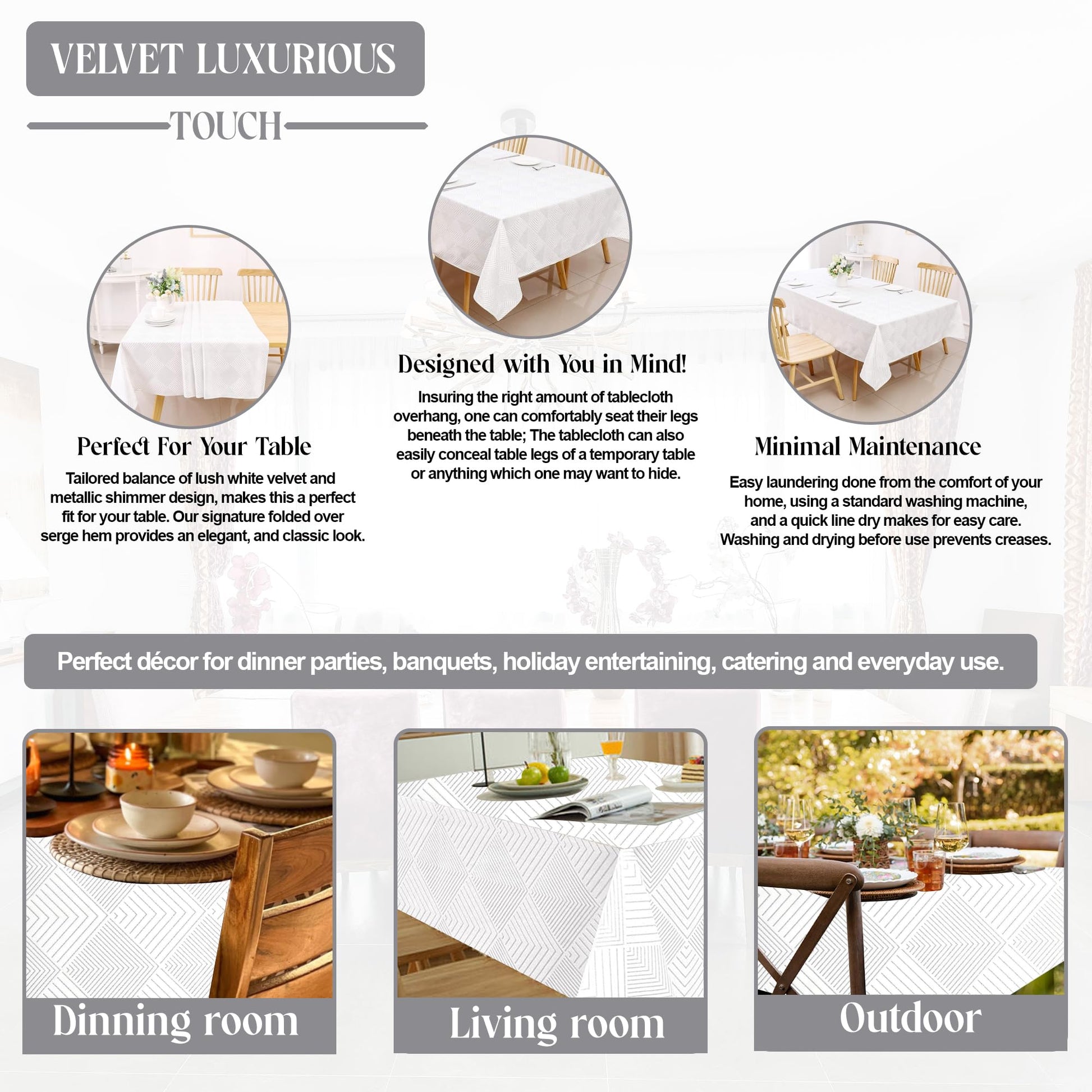 Majestic Giftware Velvet Tablecloths for Rectangle Tables | (70/144) - TC1407 Silver Geometric Print Hem Stitch Dining Table Cover | Decorative Washable Rectangle Tablecloth for Kitchen, Dinning