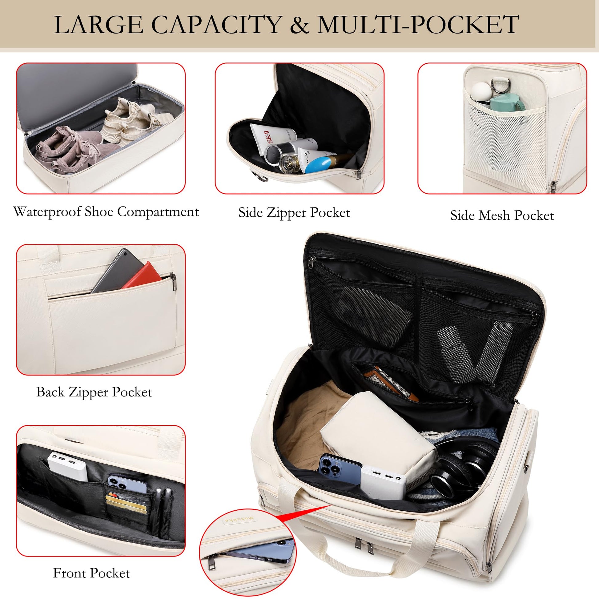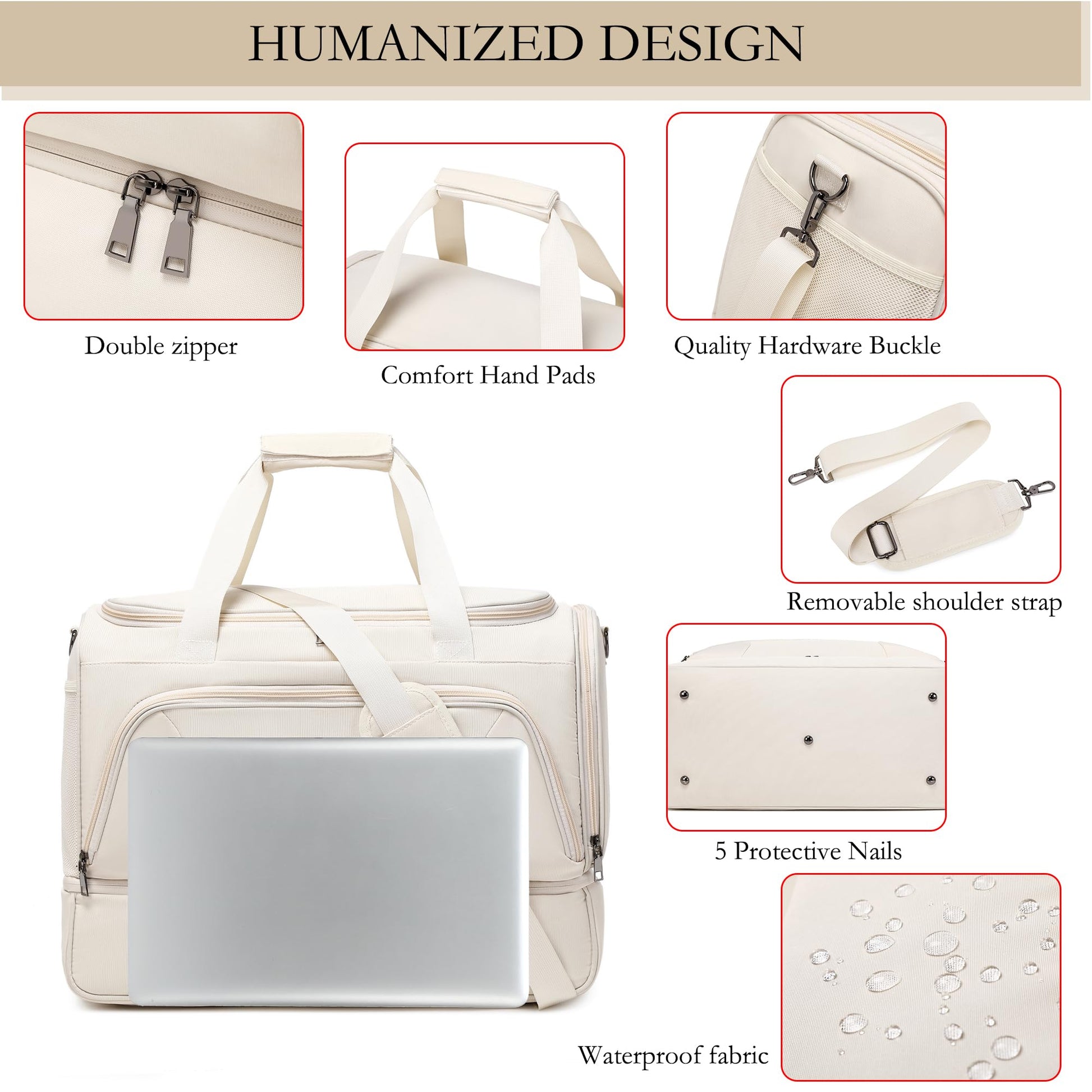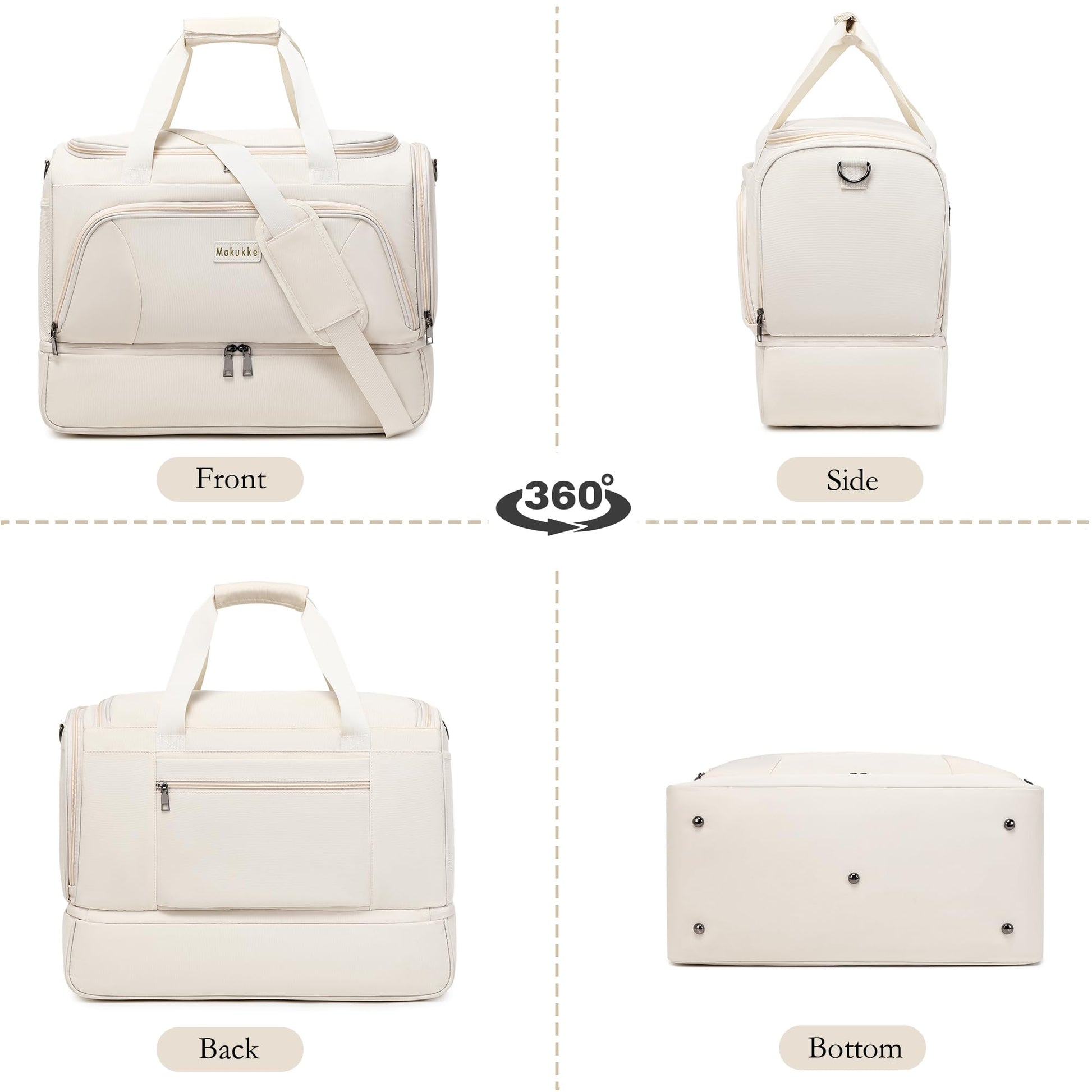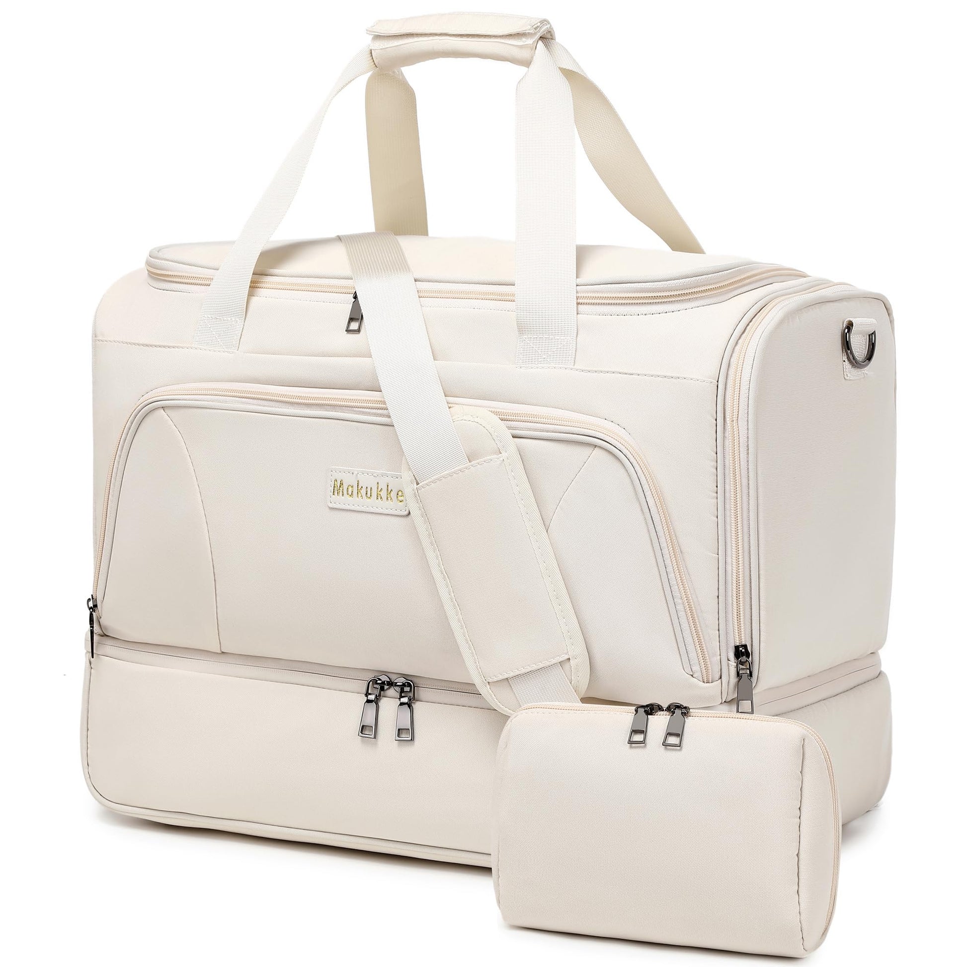 Makukke Weekender Overnight Bag for Women, Large Travel Carry on Duffle Bag with Shoe Compartment & Toiletry Bag, Sports Tote Gym Bag, Beige Weekender Bag